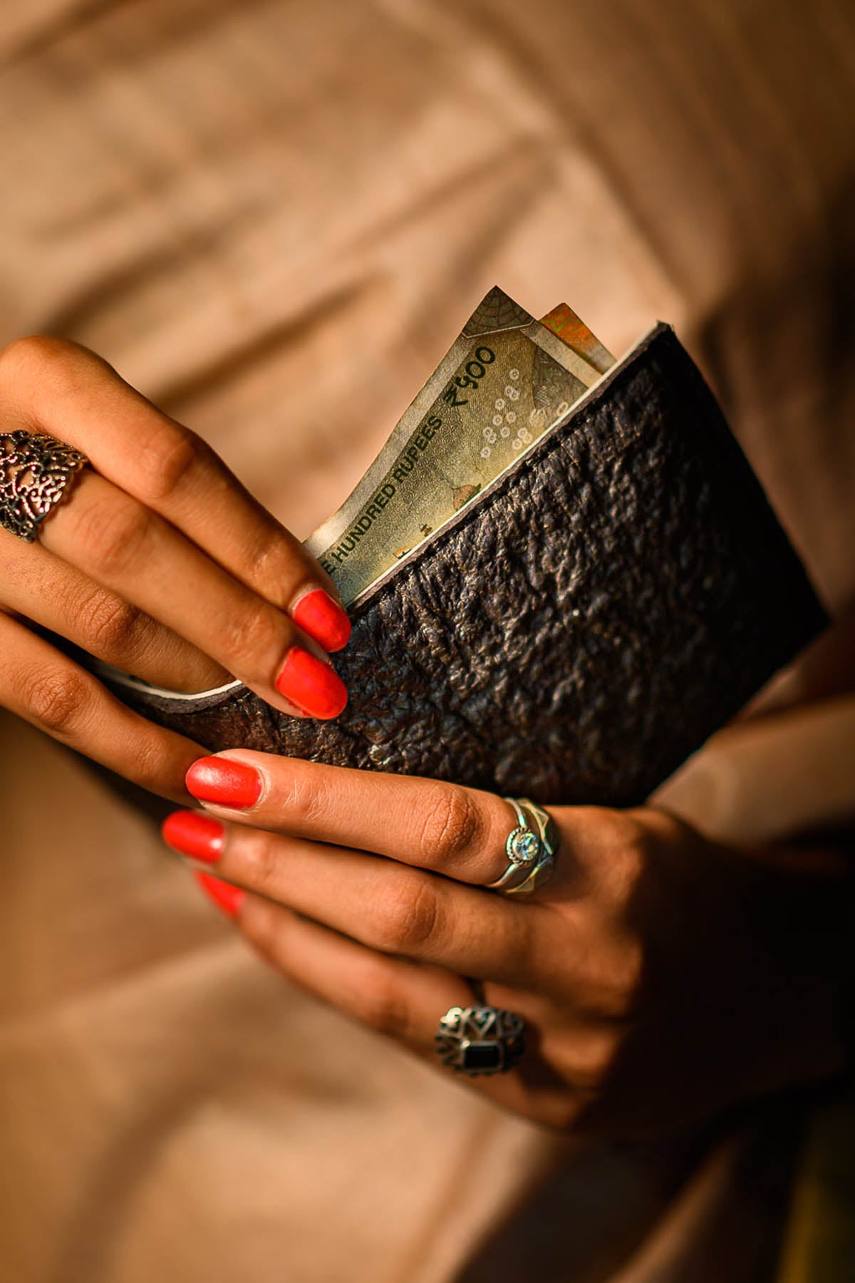 A designer wallet has been a dashing style staple for centuries. A wallet is a compact flat foldable case, mainly used to keep small personal things such as money, cards and licence. Designer wallets are often made of luxurious leather, although at ScrollnShops we have designer wallets made with eco-friendly and vegan fabrics like coconut leather.
