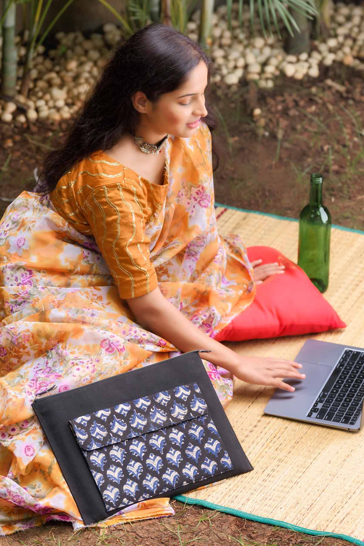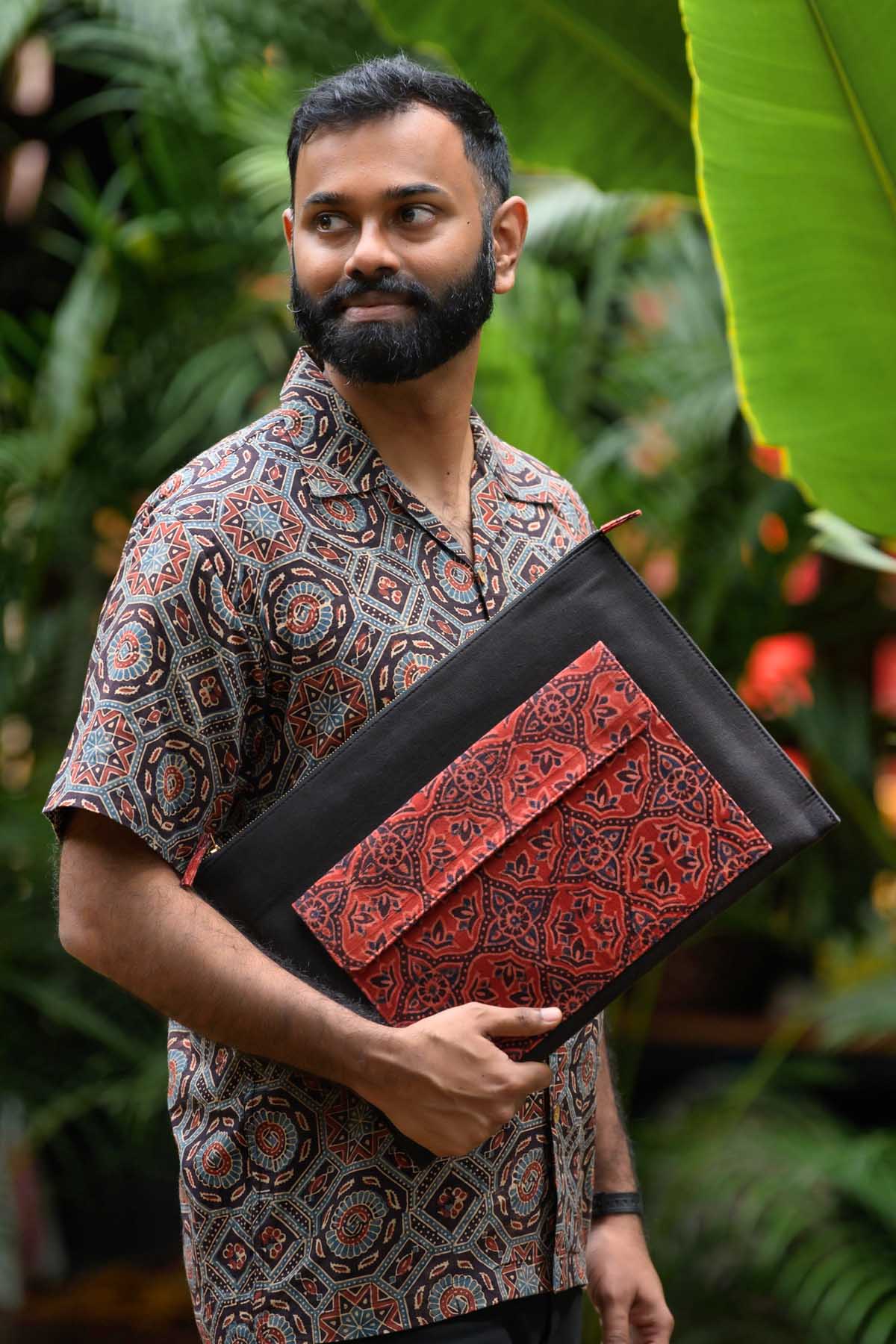 Black & Blue Canvas Laptop Sleeve, Black & Red Canvas Laptop Sleeve, Handblock Print Laptop Sleeve