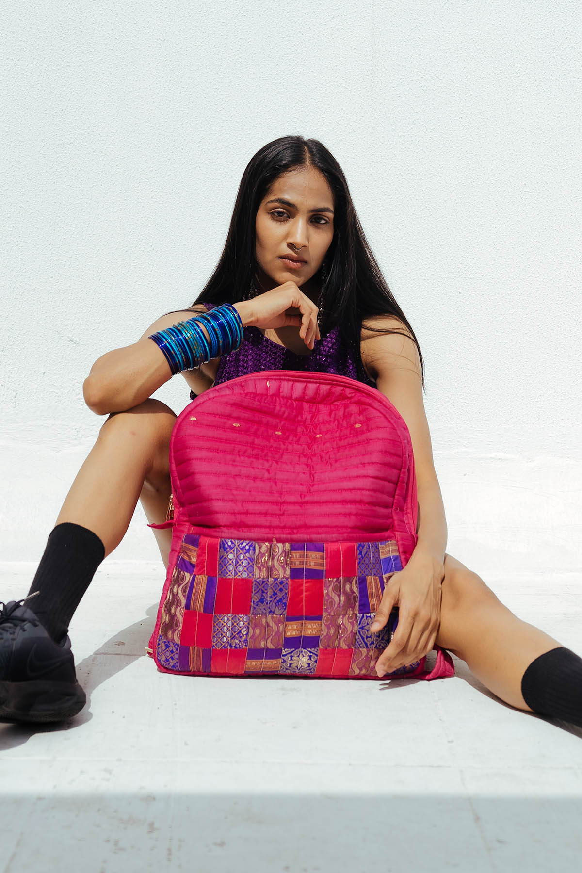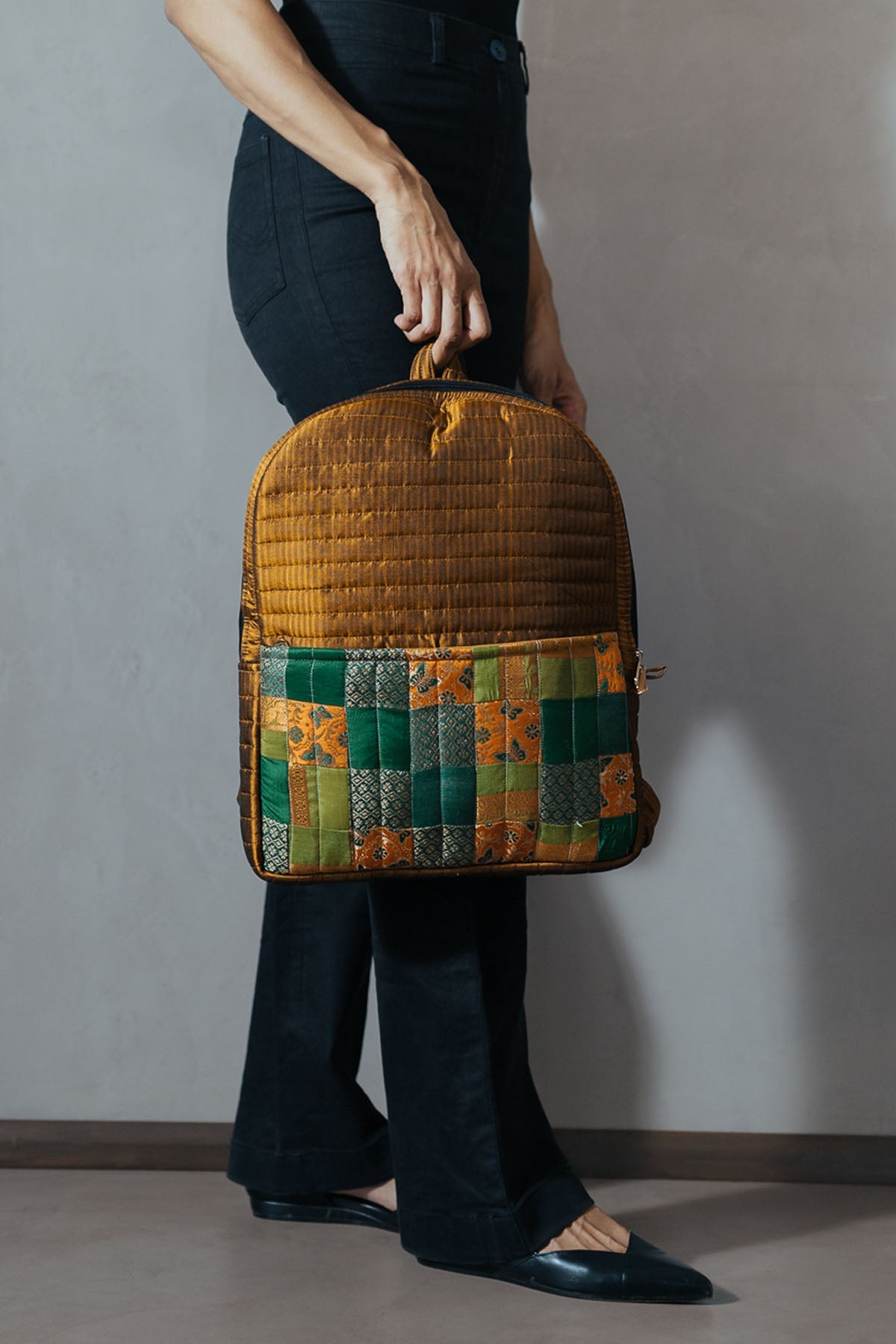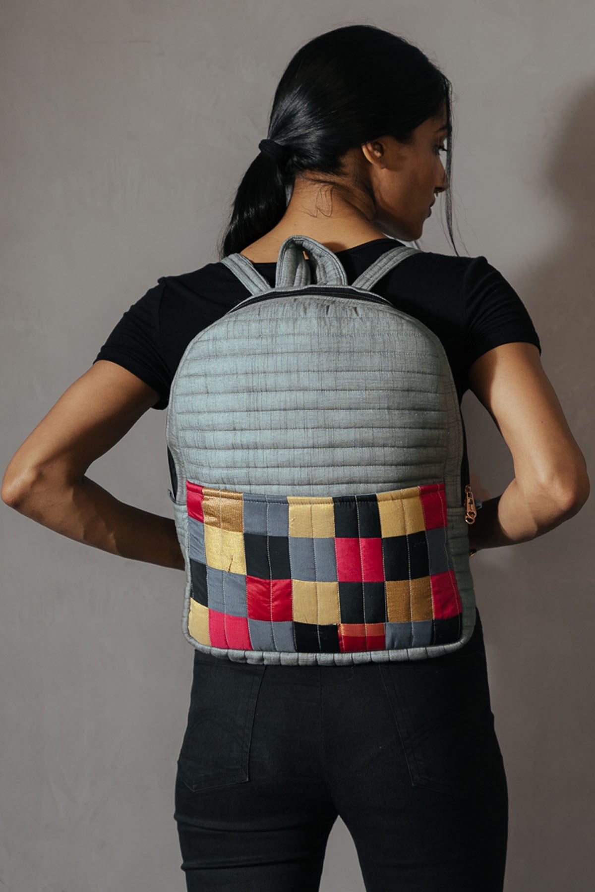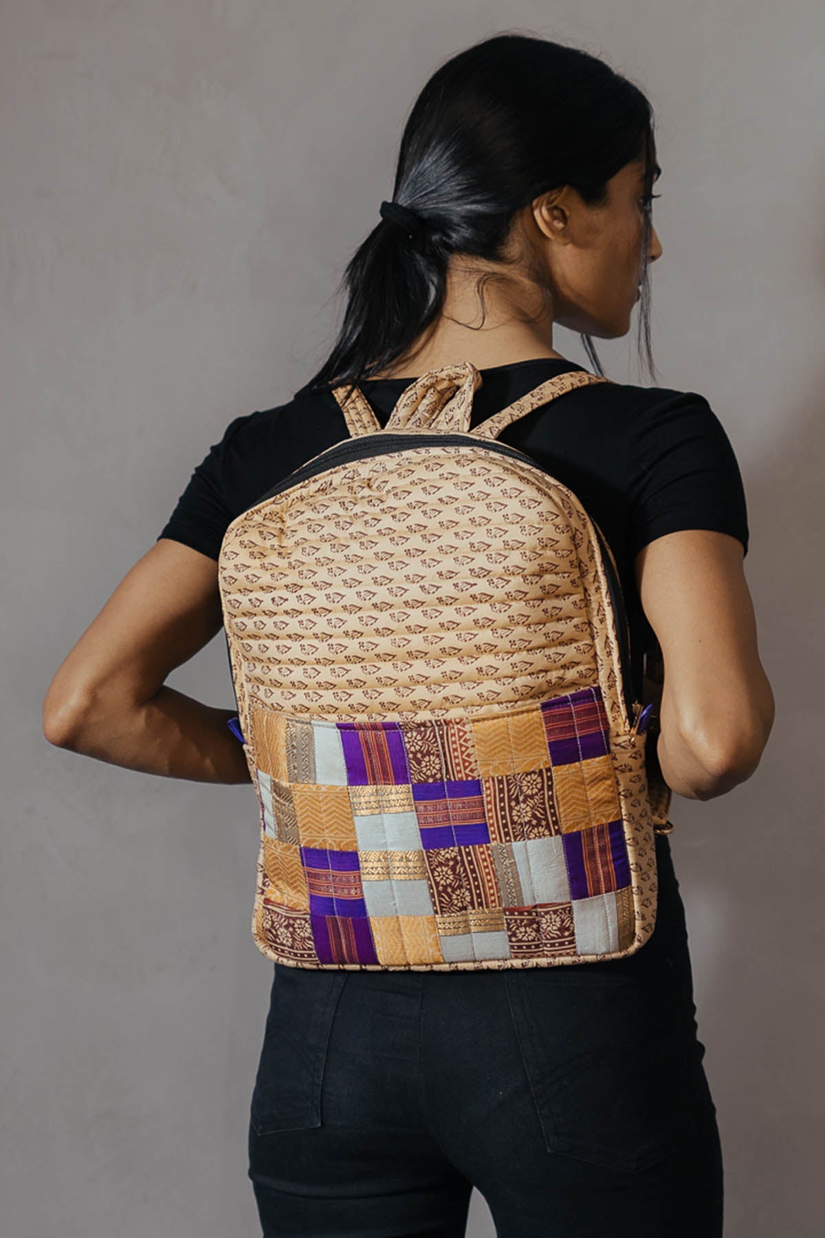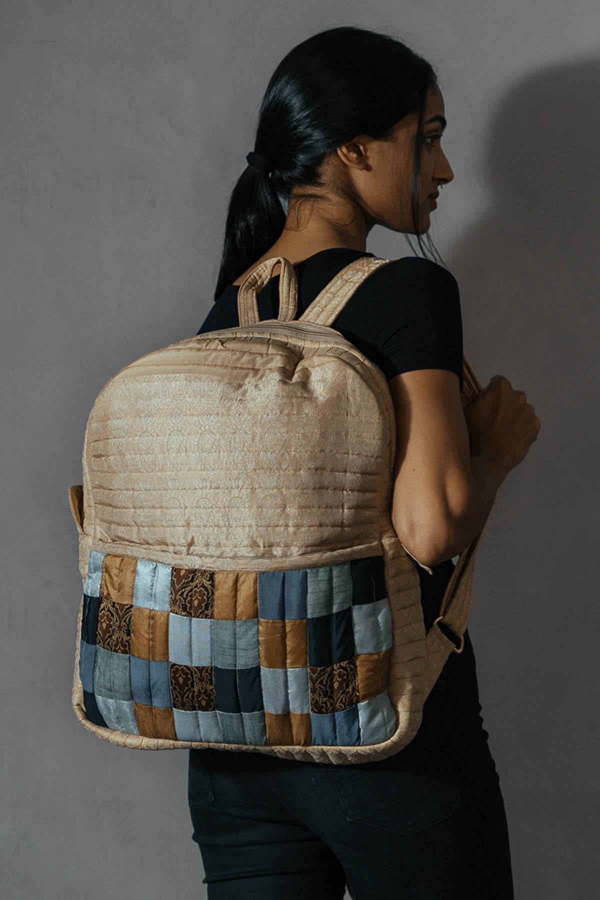 Beige Godhadi Patchwork Silk Bag, Beige Silk Backpack Bag, Black Silk Godhadi Patchwork Bag, Rani Silk Godhadi Patchwork Bag
