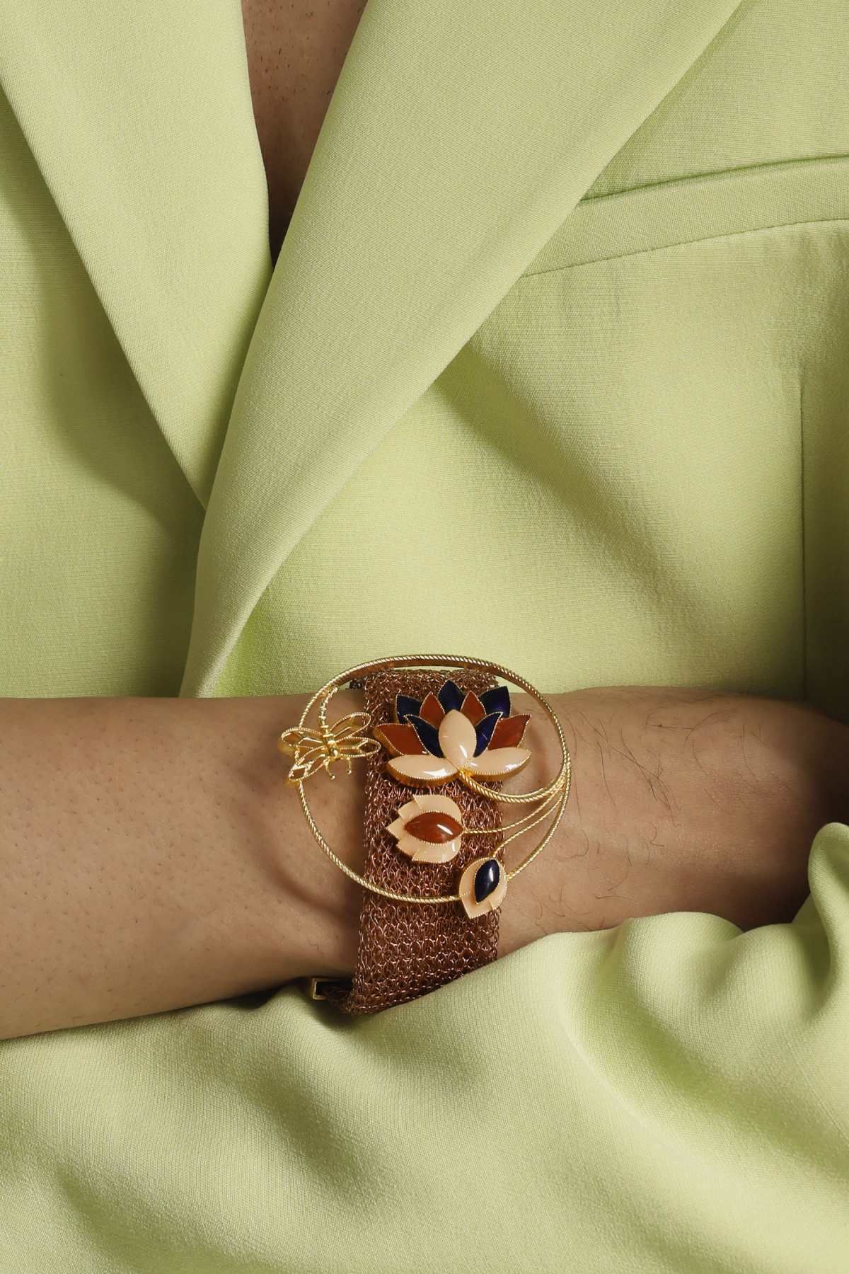 Designer Cuff Bracelets, whether simple or lavish, are a fantastic way to add a pop of glitter to a statement outfit. The cuff's silhouette adorns the wrists in a committed manner and has gorgeous detailing, making it a great accessory for celebrations. They are crafted by gold, silver, brass, gold plating, more embossed leaves, teardrop pearls, butterfly chains, or other materials. It is ideal for some extravagant occasion, like a festive or wedding ceremony, to leave an everlasting impression.