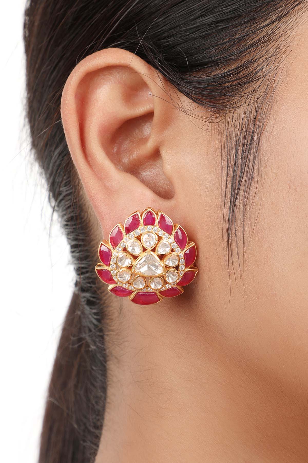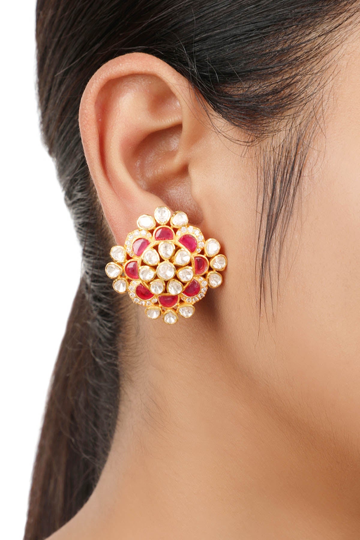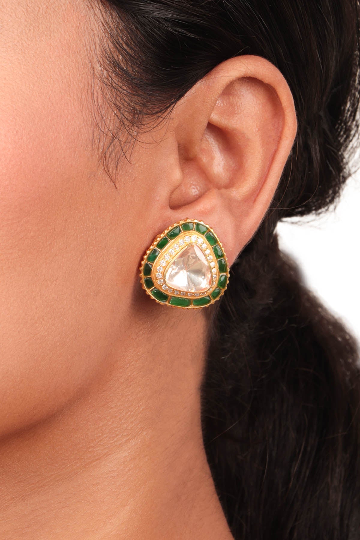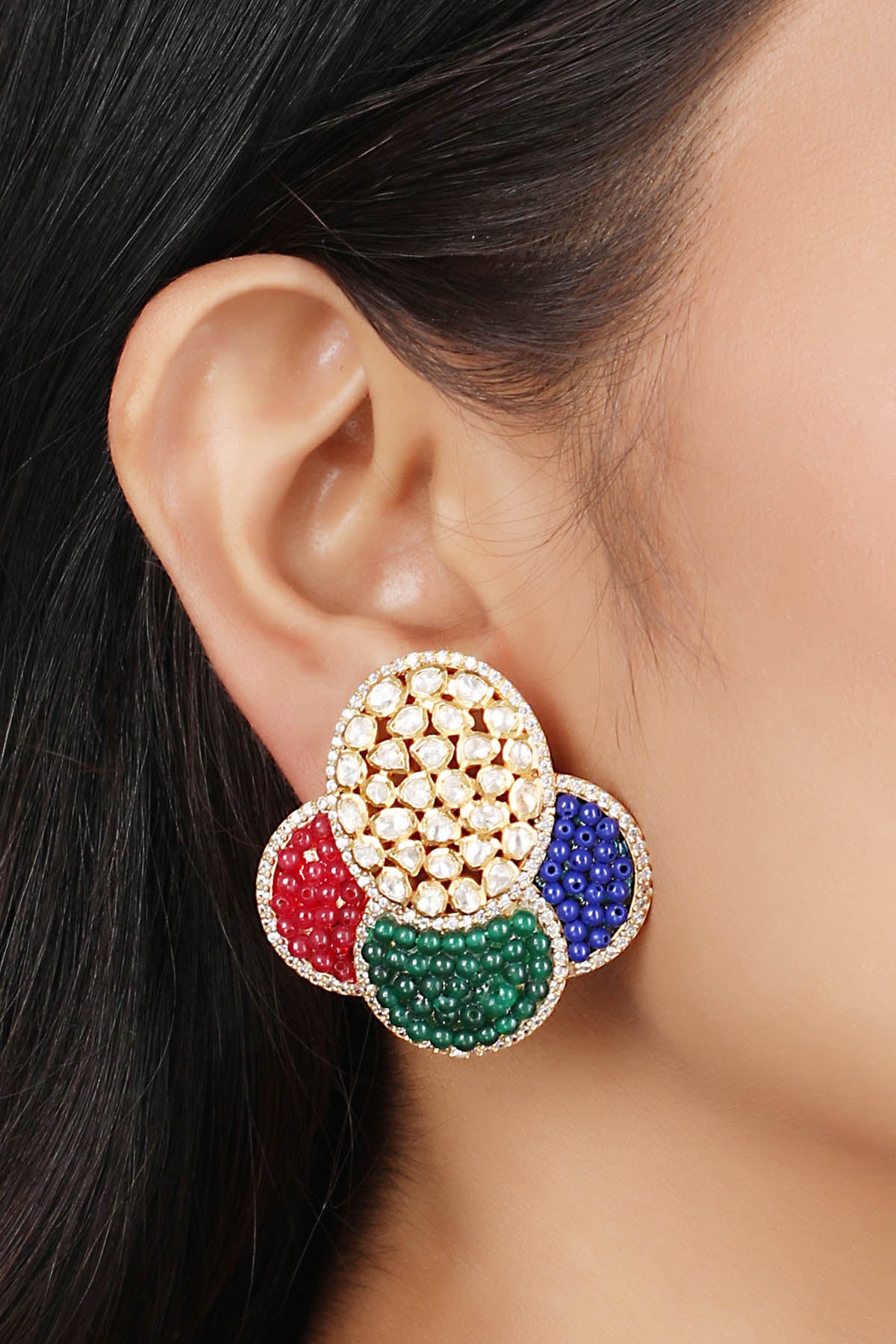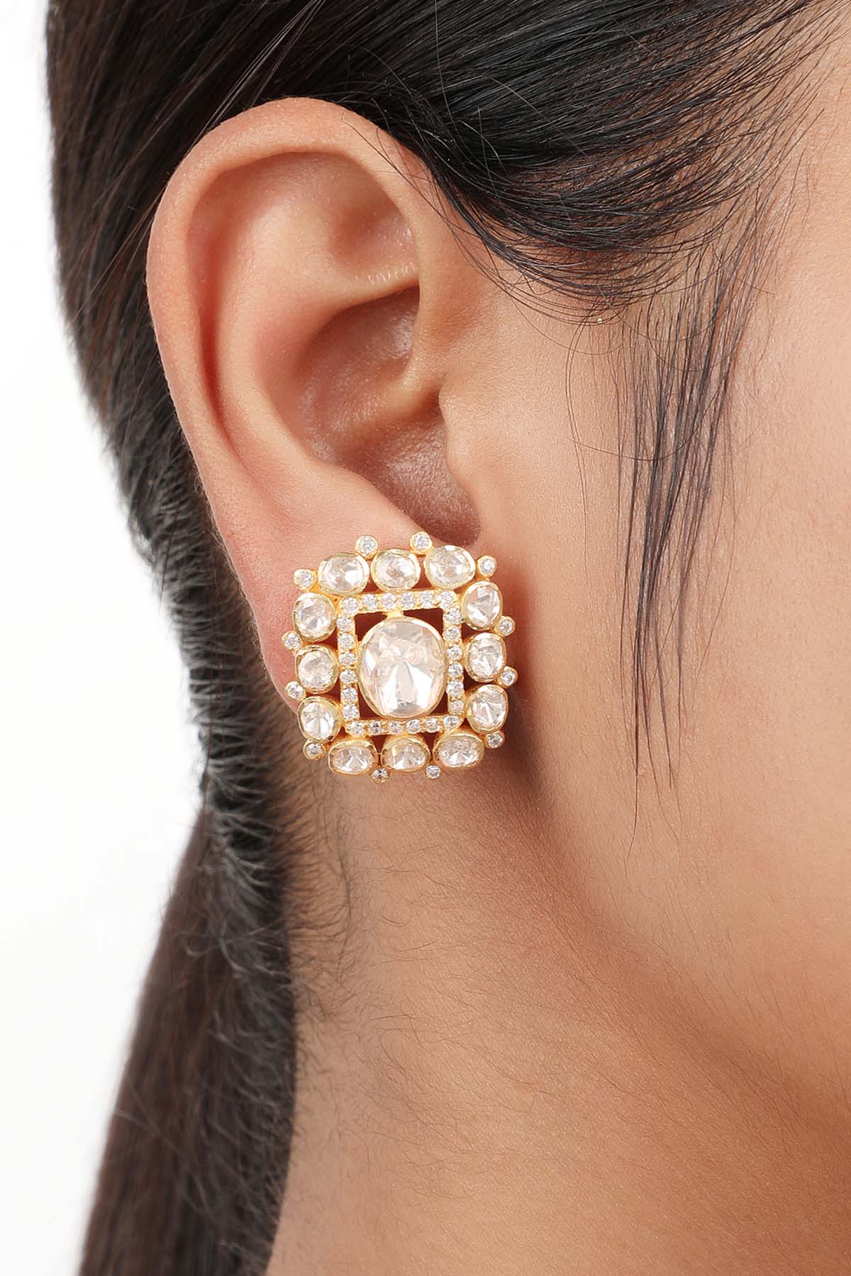 Designer Stud earrings are one of the most popular styles of earrings out there. Designer studs are a fashion staple in every women's jewellery set. The studs are small and sweet, resembling a drop of metal resting on the top of the earlobe. Studs can be simple or embellished with diamonds or beads. They're a great option for daily wear because of their comfort and compact size. The stud earrings will give you a flawless appearance no matter what you wear them with or for what occasion.