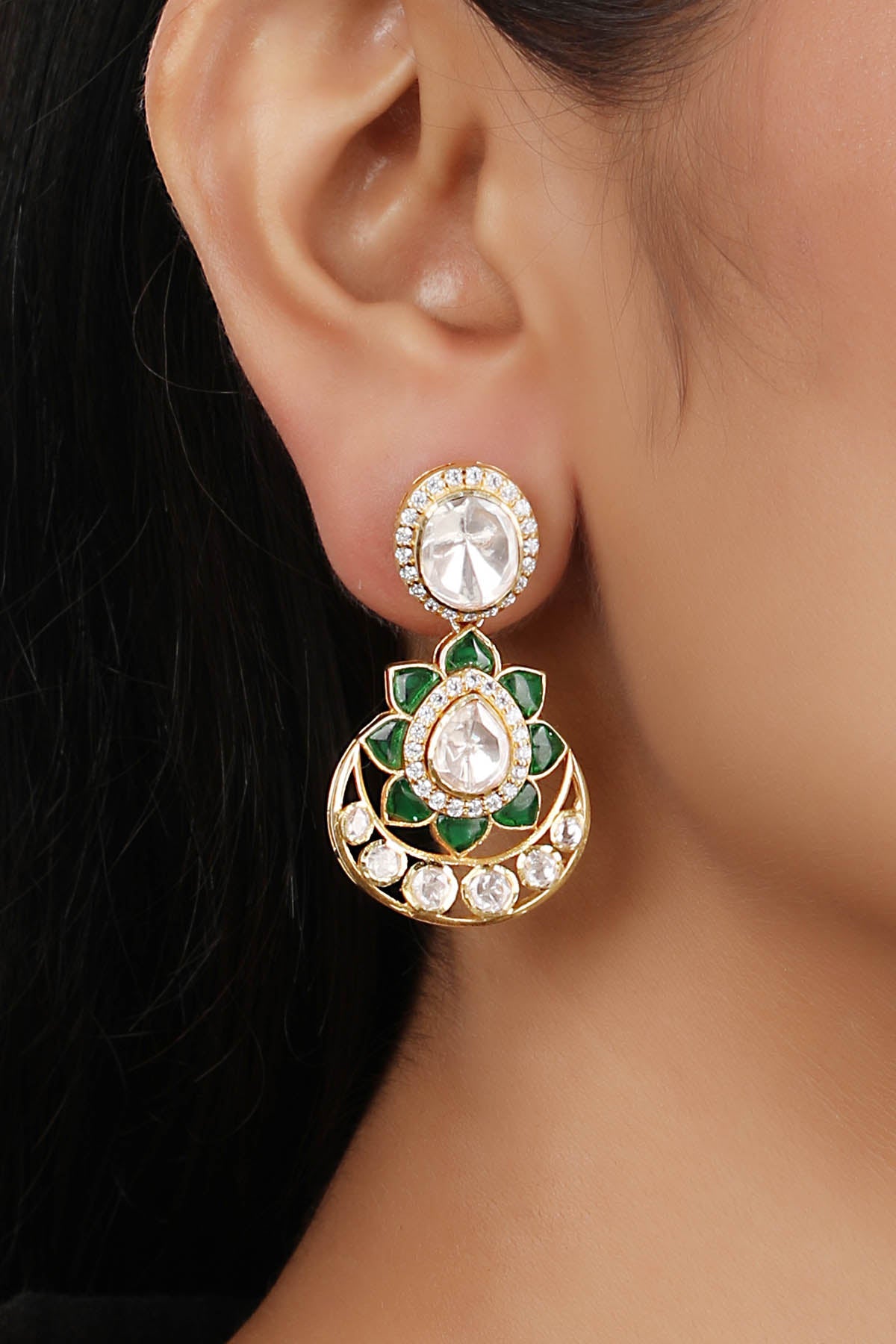 As its name indicates, Chand means moon and Bali means earrings. Designer Chandbali Earrings is a timeless earring that offers a flawless hue. These earrings are typically big and striking earrings that radiate wealth and luxury. Designer Chandbali earrings are often embellished with priceless gems, pearls, or diamonds. One can easily style these versatile earrings for casual outgoings like College, Work, Get Togethers to formal or festive occasions like Weddings, House Warming, Ganesh Chaturthi, Raksha Bandhan, or Puja.