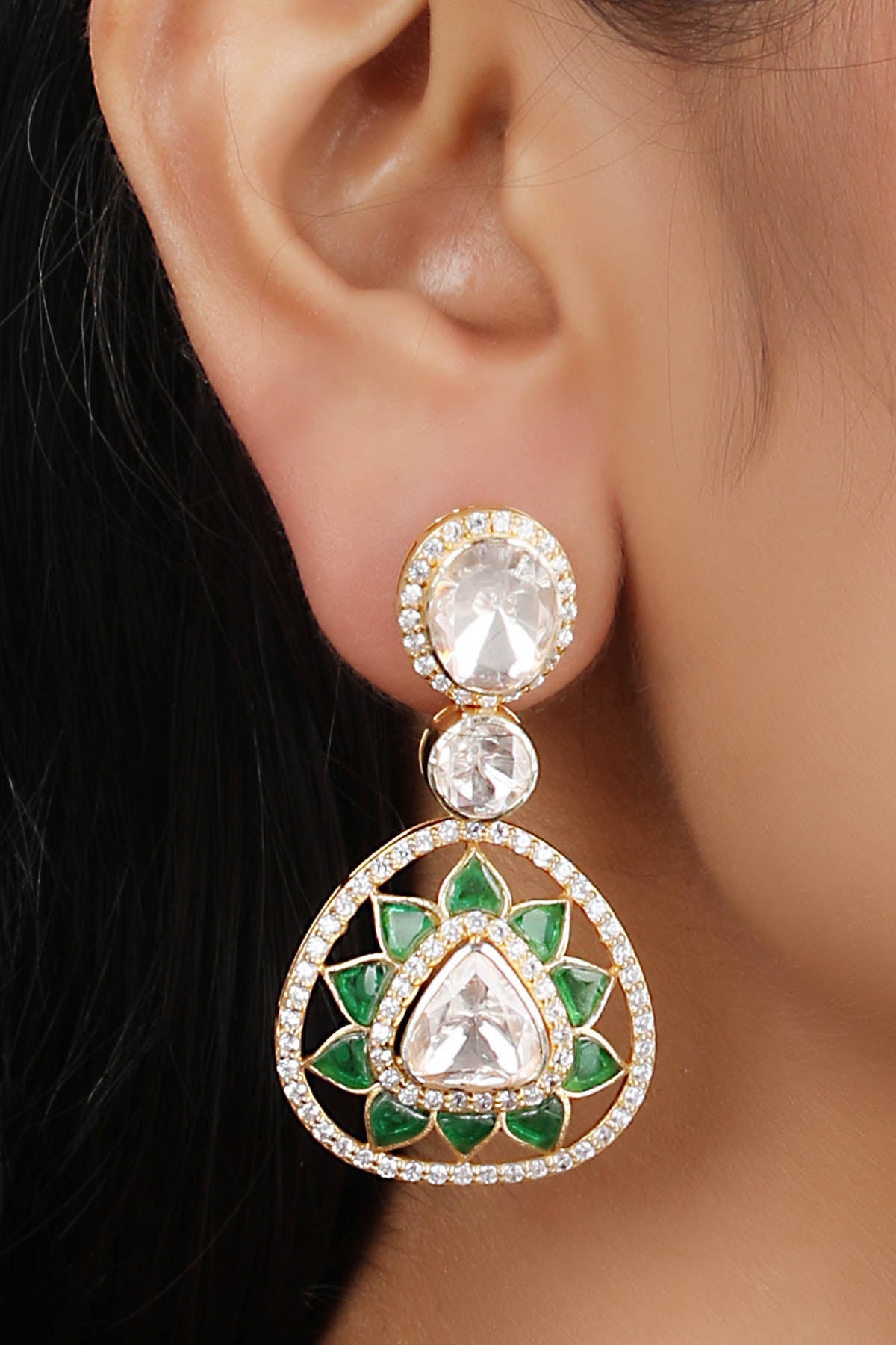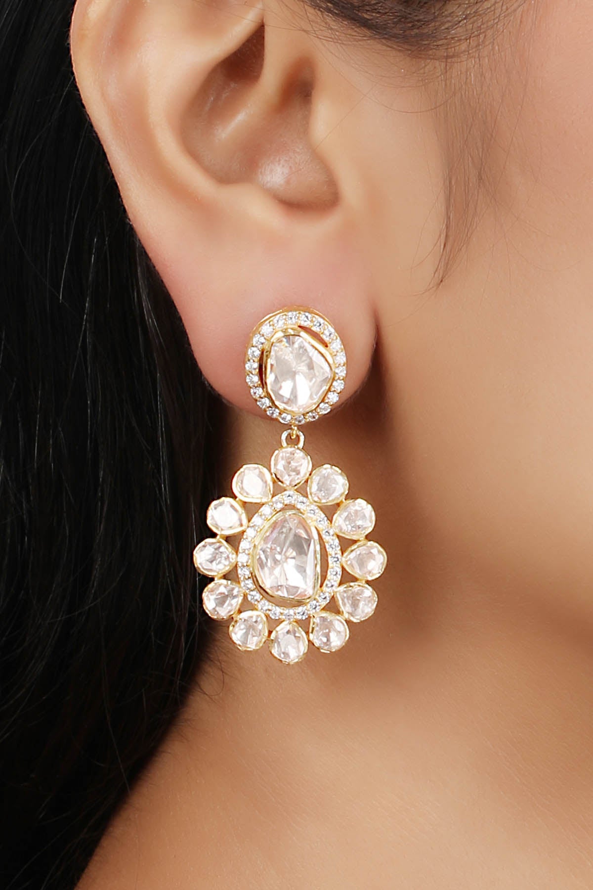 Earrings that "drop" slightly below the earlobe are called drop earrings. Designer Drop earrings are often simple designs with attachments like beads, charms, or gemstones falling from the earring's earlobe. The ornament piece remains fixed. The only movement it makes is off the base and in a tiny circle. Designer drop earrings are versatile and easy to style. You can style them for a formal occasion or festive occasion as per your preference.
