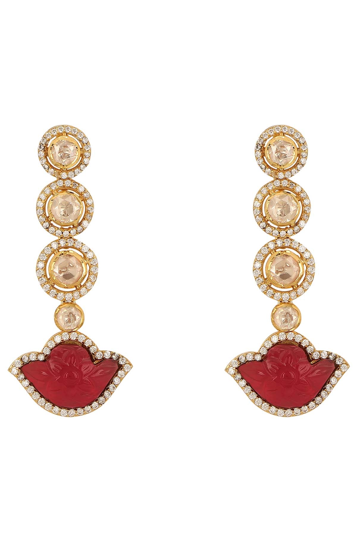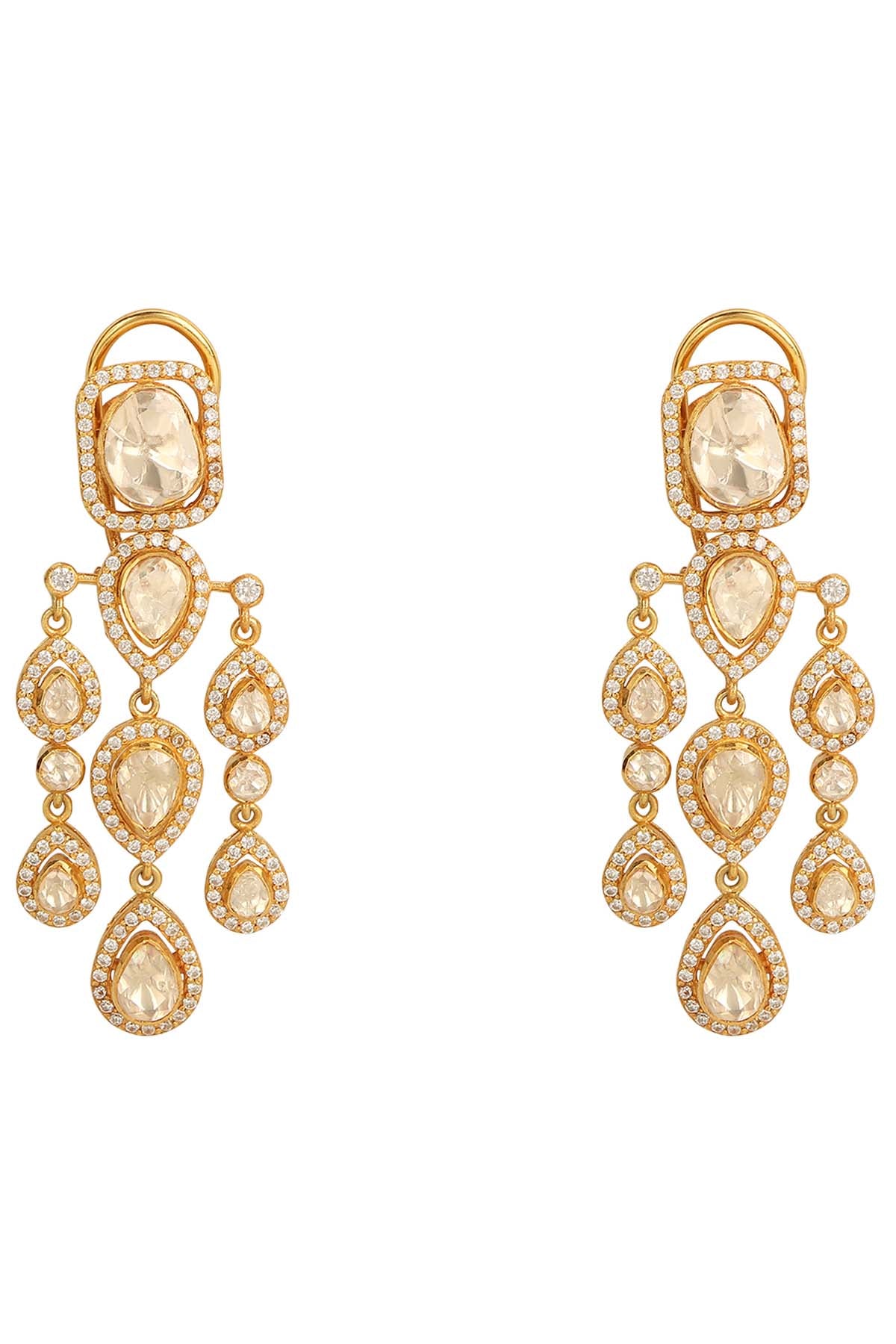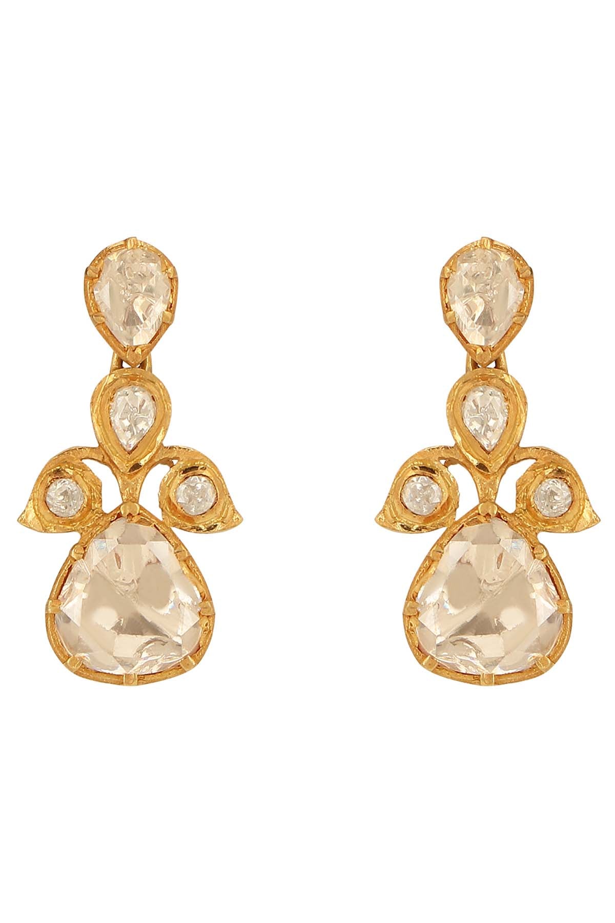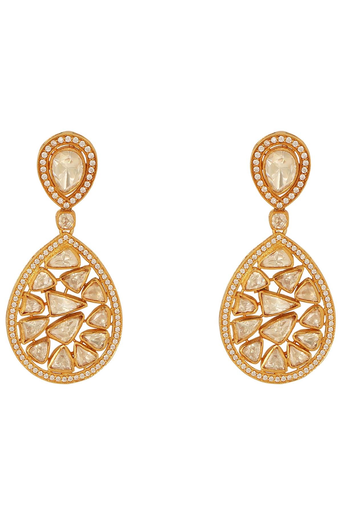 Earrings that "drop" slightly below the earlobe are called drop earrings. Designer Drop earrings are often simple designs with attachments like beads, charms, or gemstones falling from the earring's earlobe. The ornament piece remains fixed. The only movement it makes is off the base and in a tiny circle. Designer drop earrings are versatile and easy to style. You can style them for a formal occasion or festive occasion as per your preference.