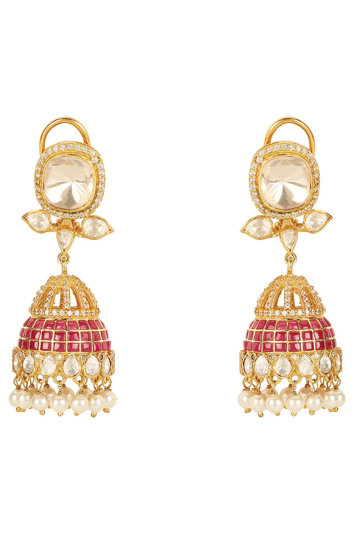In Indian fashion and culture, jhumka earrings are a staple item of jewellery. These are distinguished by their unique bell-shaped design. This beautiful work of art comes in different designs and sizes depending on the style with marvellous embellishments of diamonds, pearls, or gemstones and great attention to detail. Designer Jhumkas are the first priority for women when it comes to some grand or special occasions such as wedding ceremonies, sangeet or mehendi. Designer jhumka is a must-have in every women's jewellery box that showcases a blend of contemporary and traditional designs with a royal eye-catching vibe.