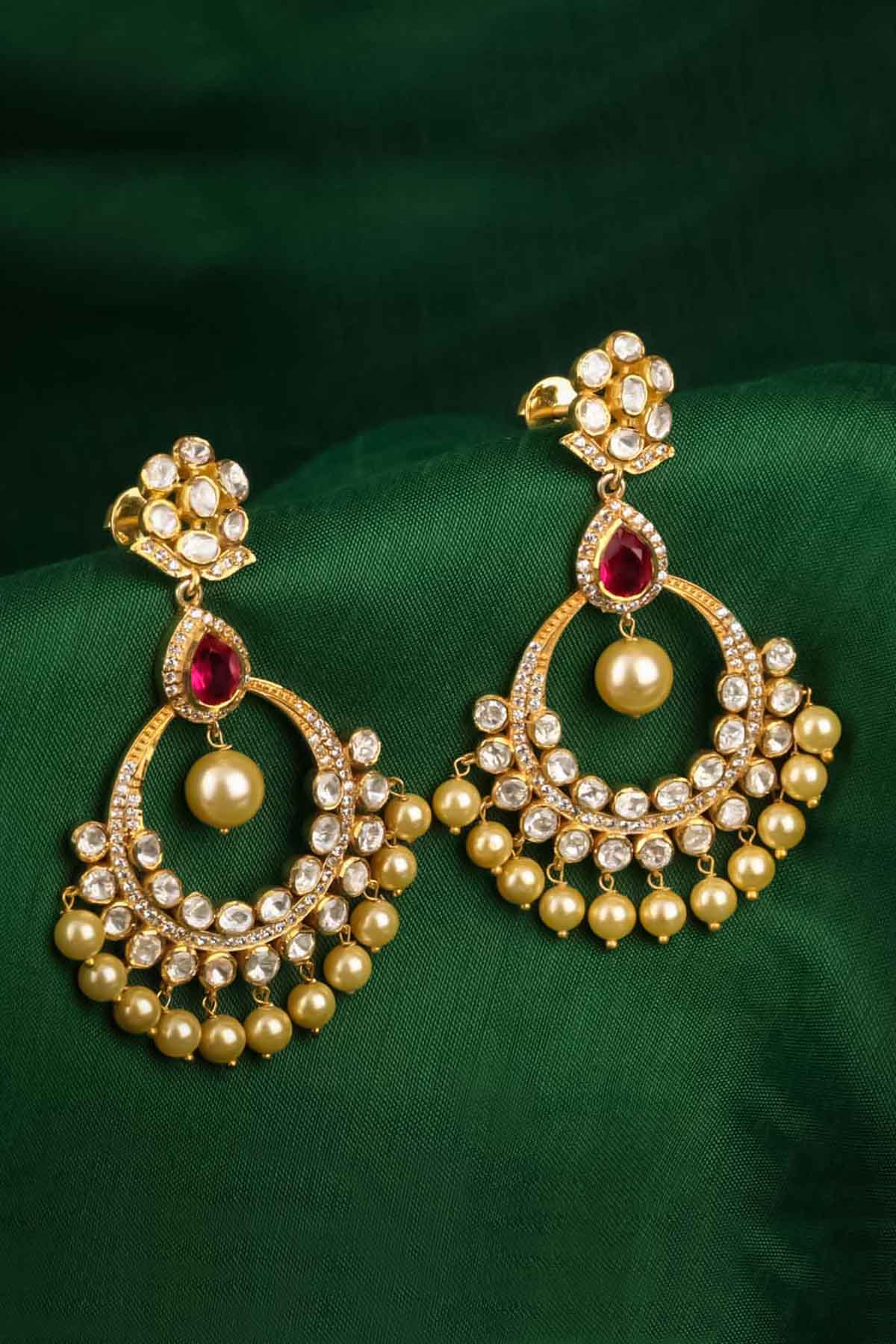 As its name indicates, Chand means moon and Bali means earrings. Designer Chandbali Earrings is a timeless earring that offers a flawless hue. These earrings are typically big and striking earrings that radiate wealth and luxury. Designer Chandbali earrings are often embellished with priceless gems, pearls, or diamonds. One can easily style these versatile earrings for casual outgoings like College, Work, Get Togethers to formal or festive occasions like Weddings, House Warming, Ganesh Chaturthi, Raksha Bandhan, or Puja.