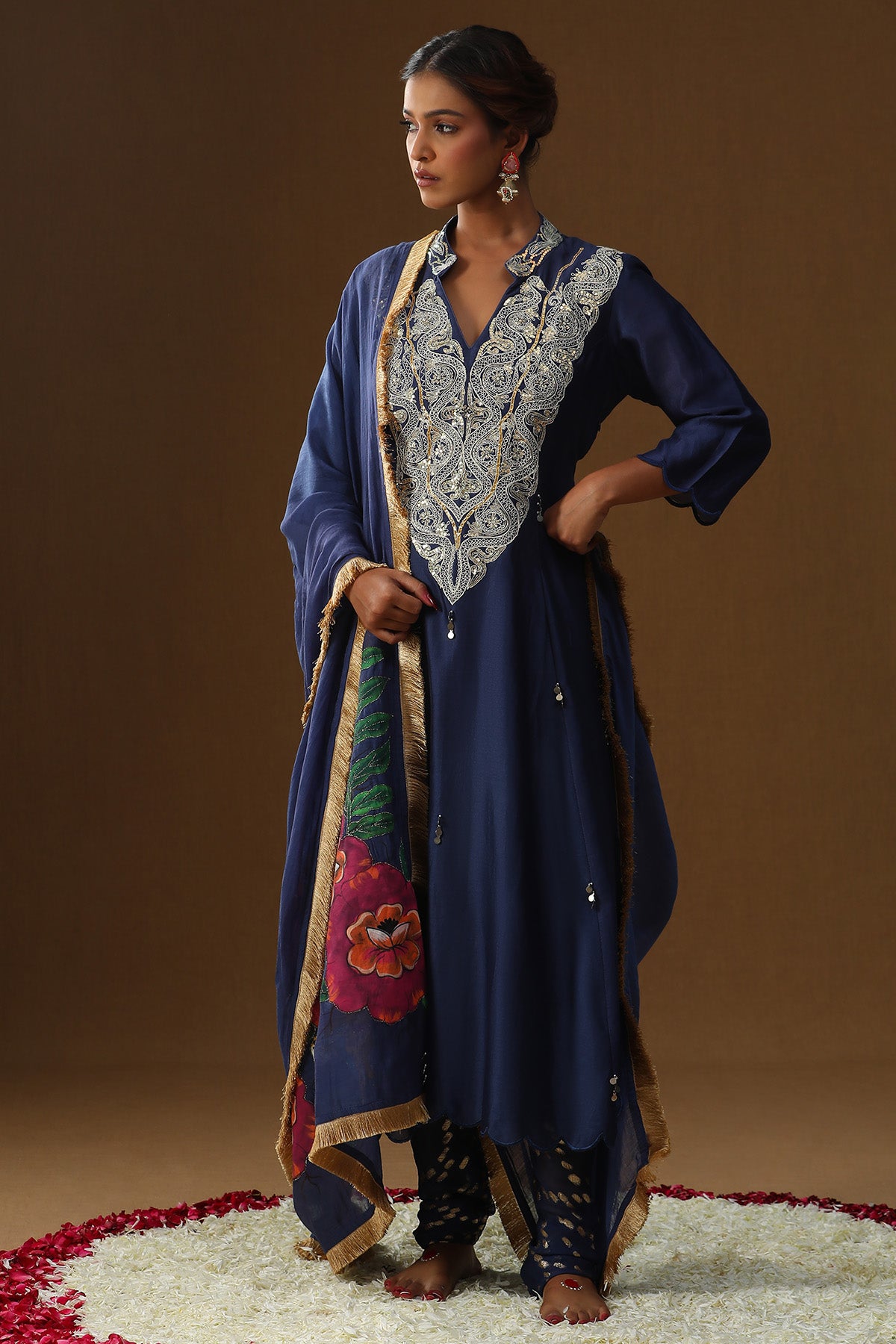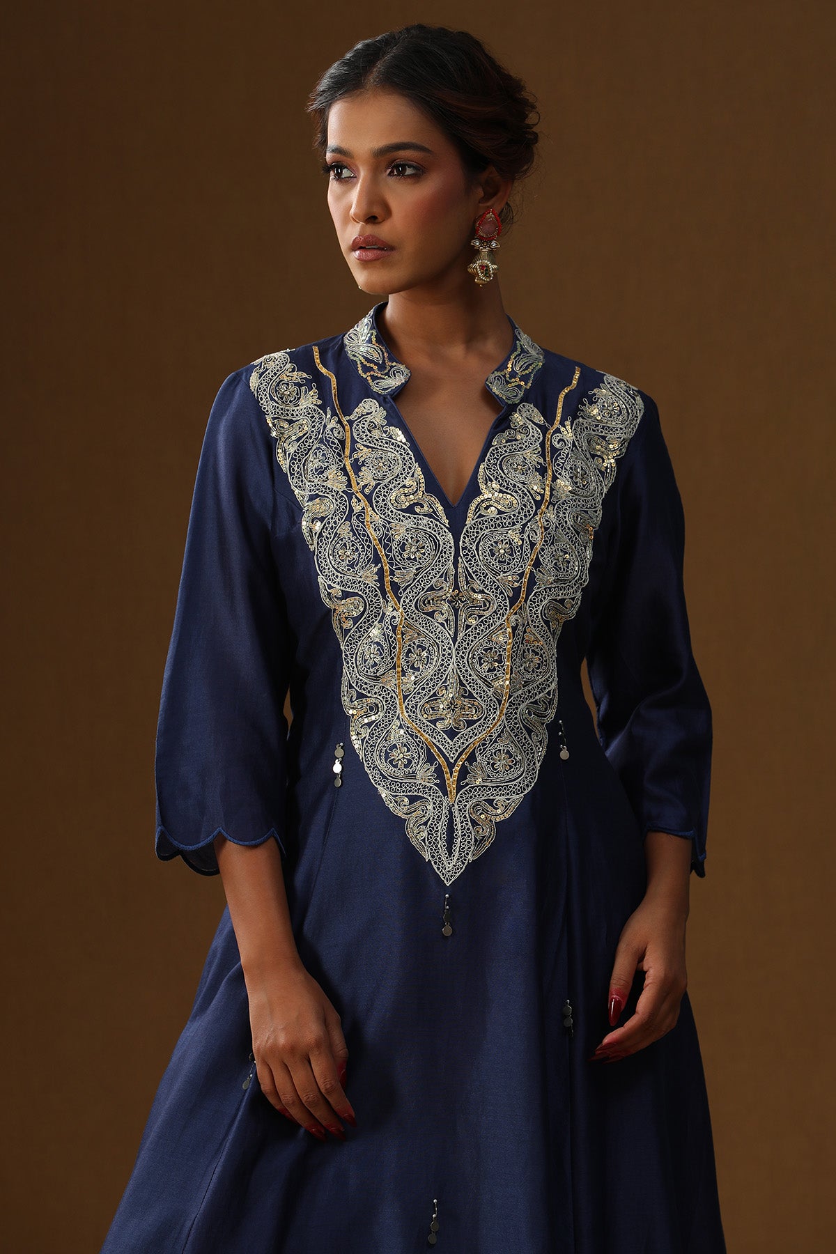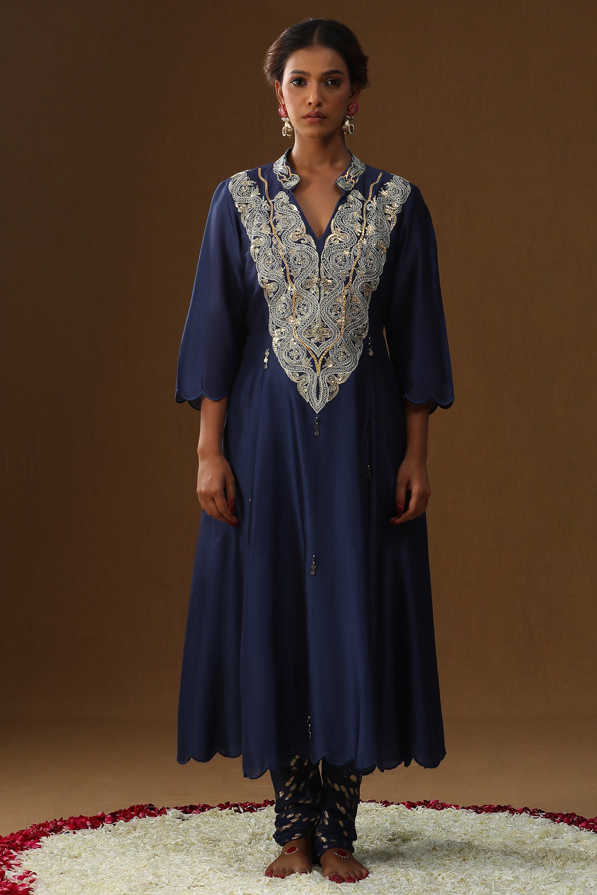 Buy Embroidered Silk Blue Kurta Set for women by Arpita Sulakshana online available at scrollnshops