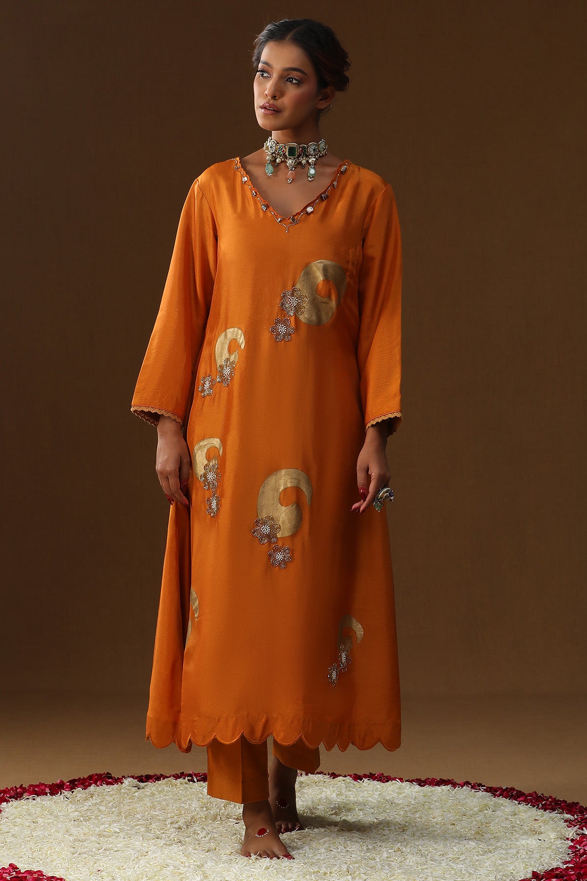 Buy Orange Beads & Tassel Kurta Set for women by Arpita Sulakshana online available at scrollnshops