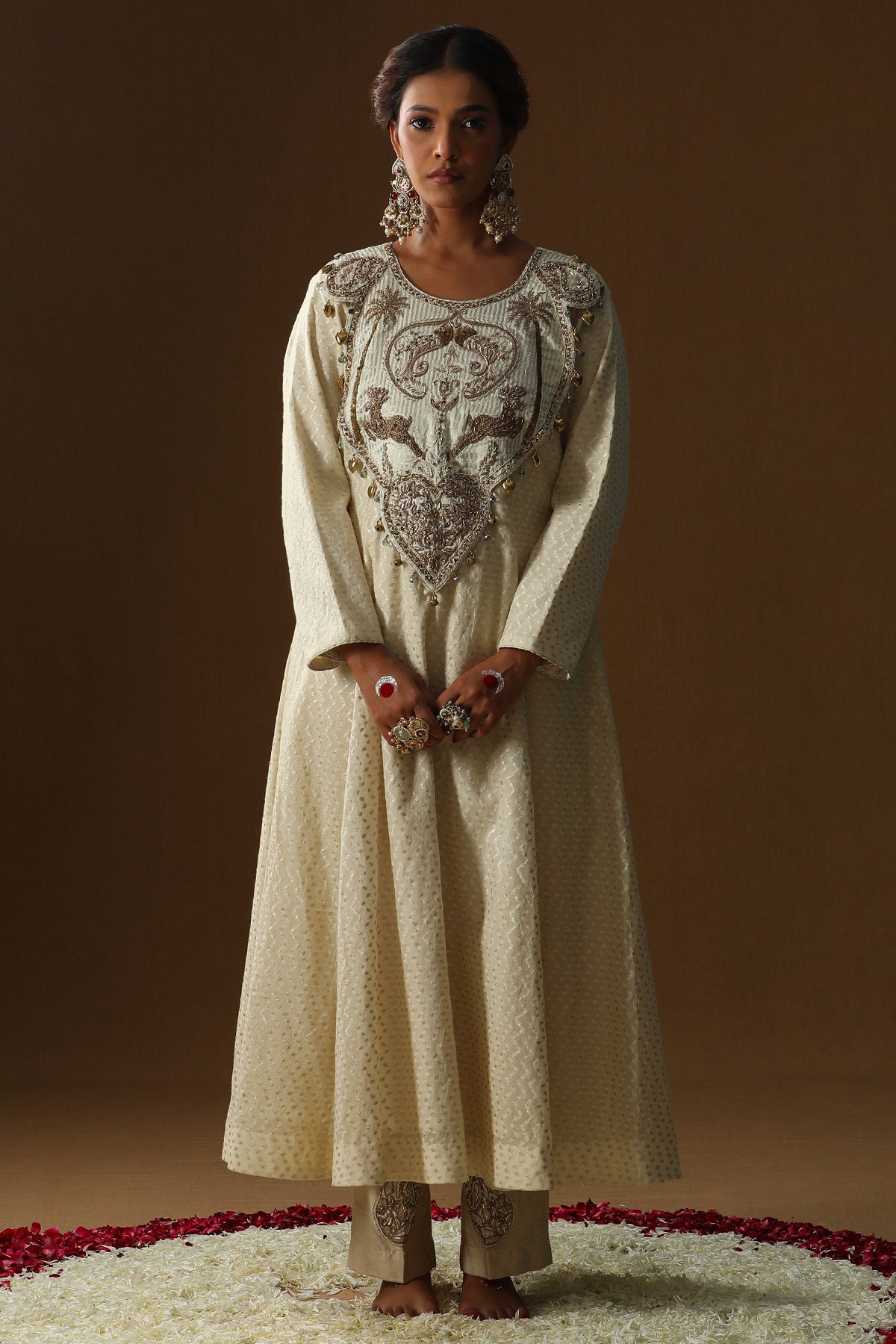 Buy Ivory Sequins Tassels Kurta Set for women by Arpita Sulakshana online available at scrollnshops