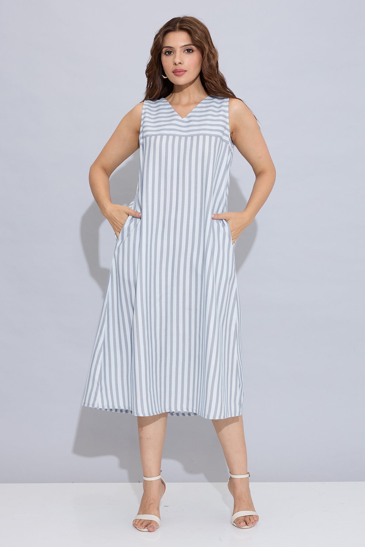 Buy Grey Stripes Sleeveless Dress for Women by SNEHA B Designer online available at scrollnshops