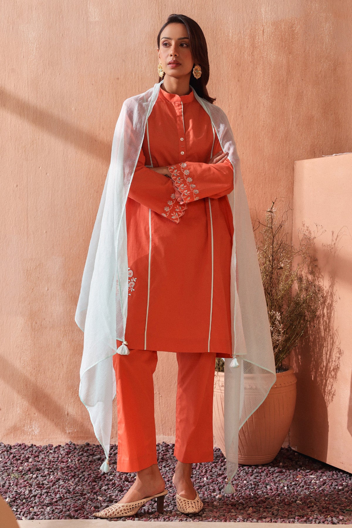 Our selection of kurta sets suits every woman's taste and style, with classic patterns and modern styles. For a stylish ethnic combination, pair a printed kurta with palazzo pants and jutties; alternatively, go for an embroidered kurta with sharara and heels for a more formal vibe. You can easily upgrade your Indian wardrobe and enjoy the timeless elegance of kurta sets with ScrollnShops.
