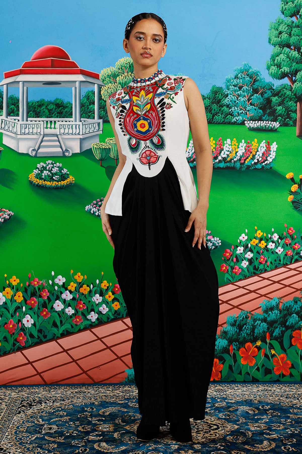 Buy Black White Floral Motifs Dress for women by Saksham Neharicka online available at scrollnshops