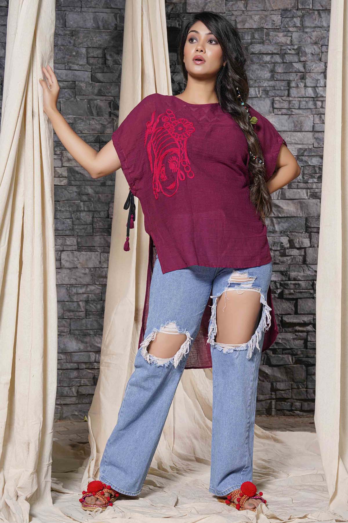 Tops are a wardrobe necessity for every woman since they are both comfortable and versatile. Stylish funky designer tops, shirts, short tunic, everyday casual wear have become the most in-demand fashions and are regarded as the best option to stock wardrobes with. They are offered in funky prints, different silhouettes, vibrant colors, styles, and designs to accommodate each woman's unique sense of dressing. ScrollnShops showcases opulent tops and shirts for your wardrobe because they are adaptable, distinctive, and different. It will save you from the awkward situation of having nothing to wear.