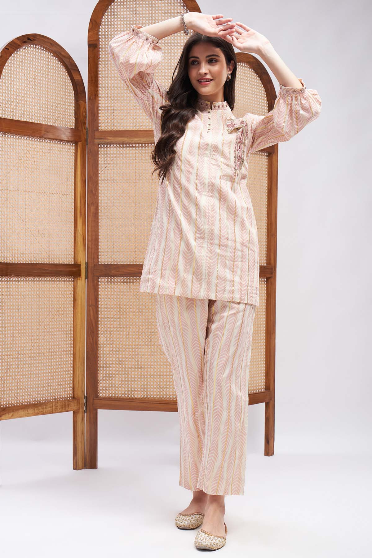 The adaptability of co-ord sets is one of its biggest benefits. There is a co-ord set to fit every situation, whether you're going to the office, having a night out, or attending coffee with buddies. For a more polished look, go for a fitted jacket and pair of pants, or embrace a crazier style with a crop top and skirt set. With so many different styles like 3 Piece Co-ord Set, Bralette & Printed Pants, Double Shade Co-ord Set, Tunic and Pants Co-ord Set, Shirt and Pant Set, and many more and fabrics like Chiffon, Linen, Silk, Cotton, Khadi, Satin, and etc. You may be stylish and unique at the same time. People call as Co-ords, Cords or Co-ord