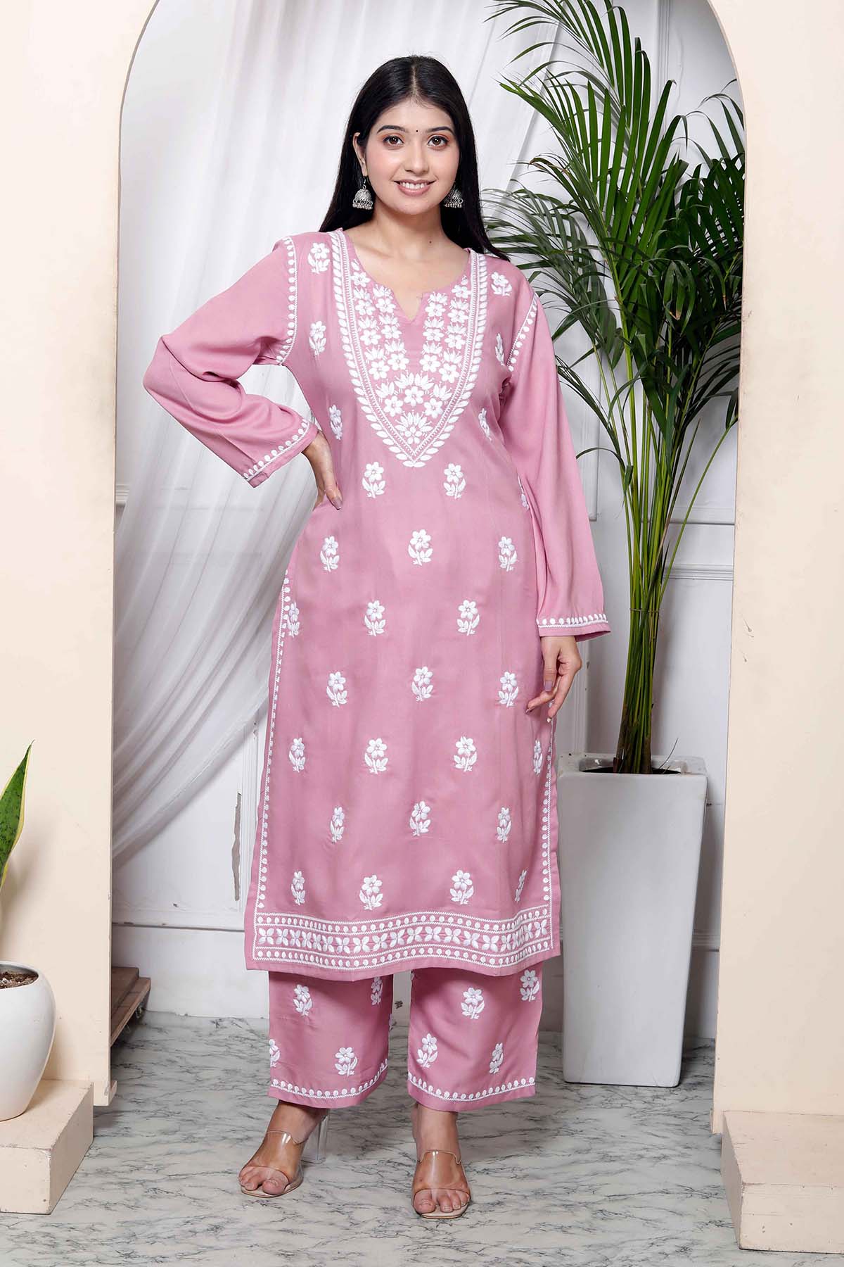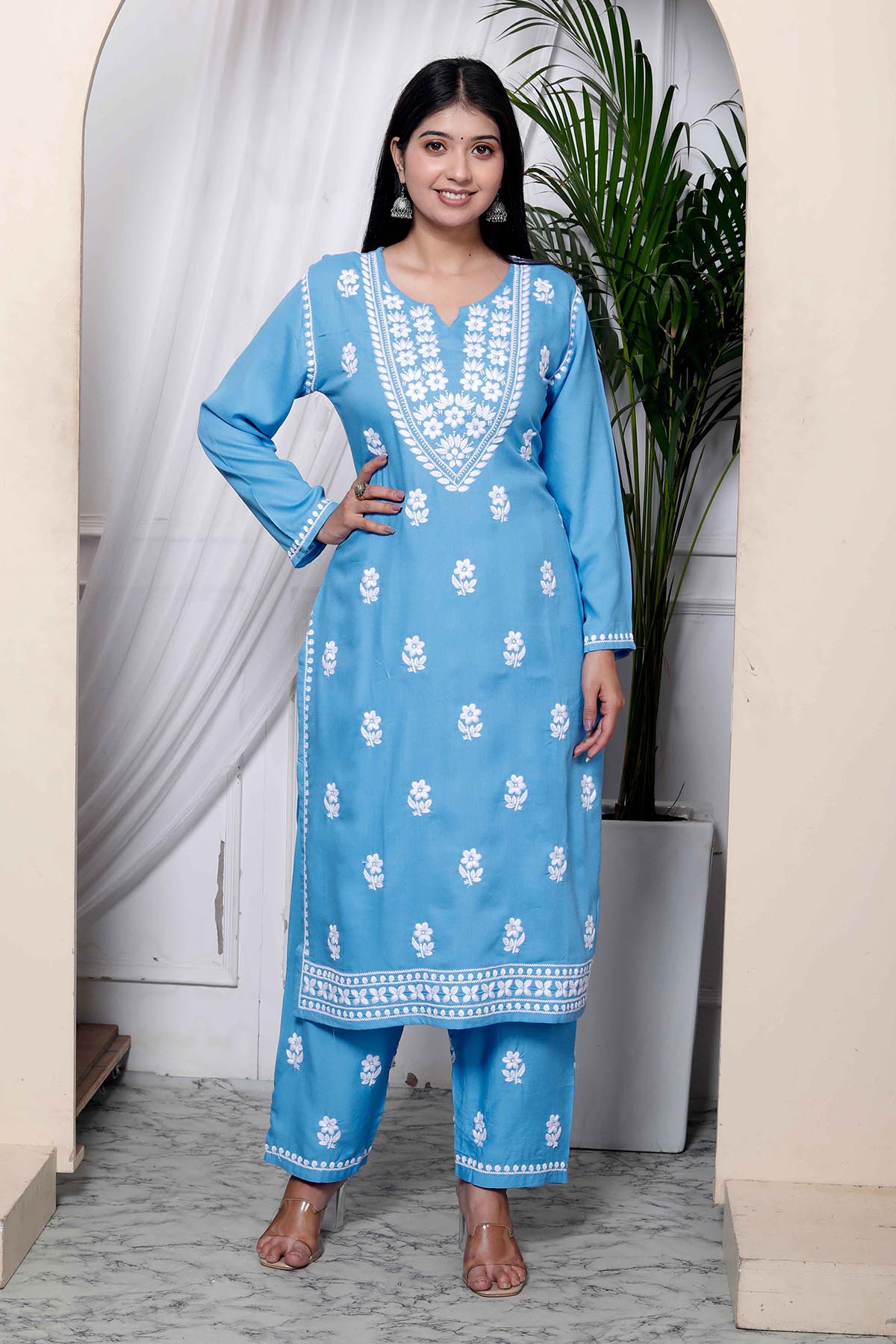 Our selection of kurta sets suits every woman's taste and style, with classic patterns and modern styles. For a stylish ethnic combination, pair a printed kurta with palazzo pants and jutties; alternatively, go for an embroidered kurta with sharara and heels for a more formal vibe. You can easily upgrade your Indian wardrobe and enjoy the timeless elegance of kurta sets with ScrollnShops.
