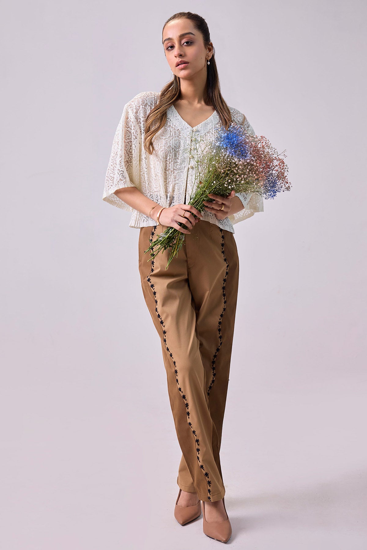 Buy Beige & Camel Embroidered Pants for Women by 97 Motifs Designer online available at scrollnshops