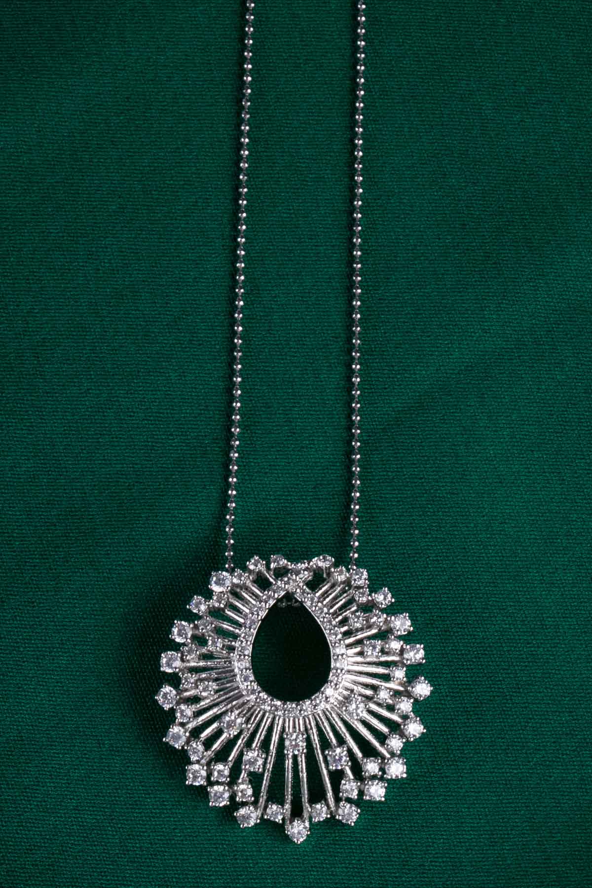 The designer pendant is a classic piece of jewellery that is always in style. A designer pendant is constructed with a small object that is attached to a graceful chain or necklace. Note: A pendant comes as a hanging piece without a chain; the wearer can experiment with different styles of chain as per her styling preference. Designer pendants at ScrollnShops are adorned with a variety of enchanting gemstone and diamond surroundings, exuding a sophisticated and feminine elegance. Every woman's closet should include a pendant since it provides a simple yet elegant look. It is an amazing adaptable piece of jewellery that can be worn for everyday use, being lightweight. One can also style them for festive occasions and informal affairs, showcasing minimal and Porsche hues.
