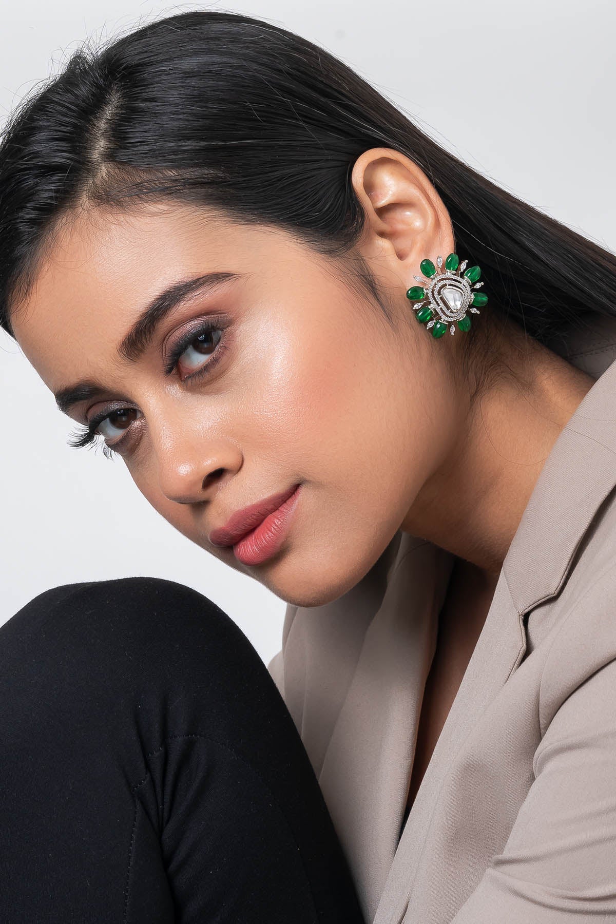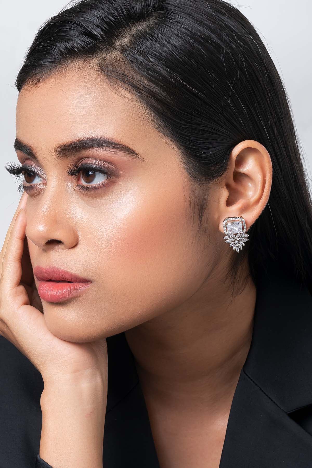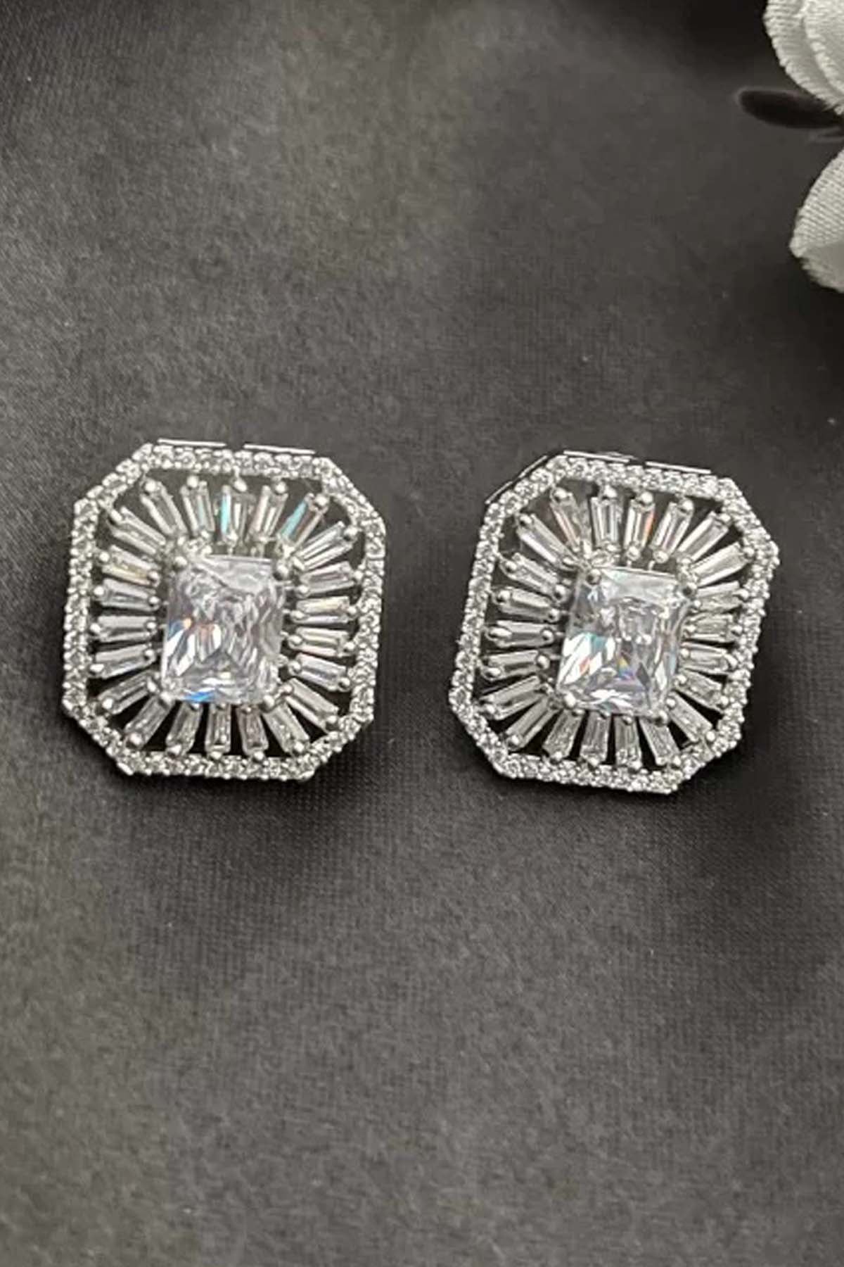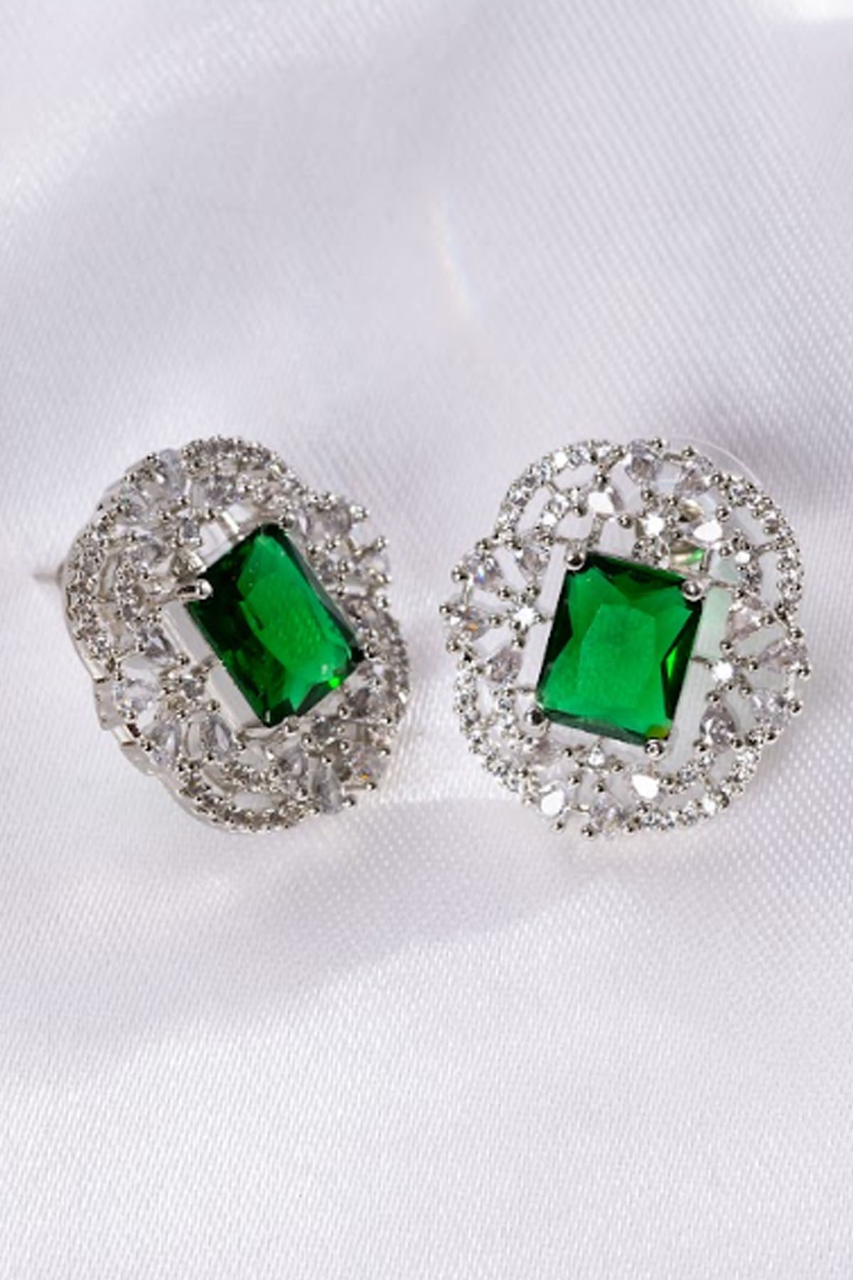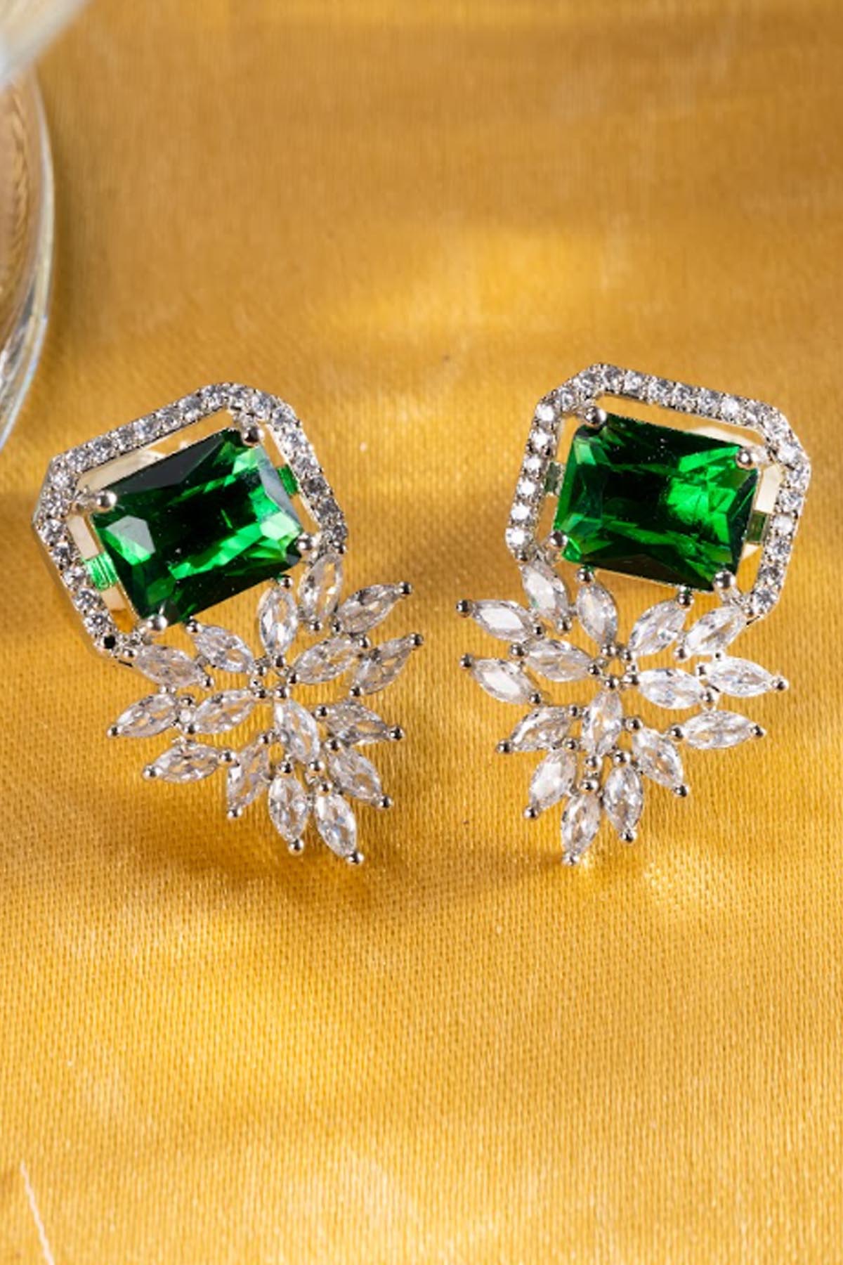 Green Rectangle Diamond Studs of Brand Putstyle Available online at ScrollnShops
