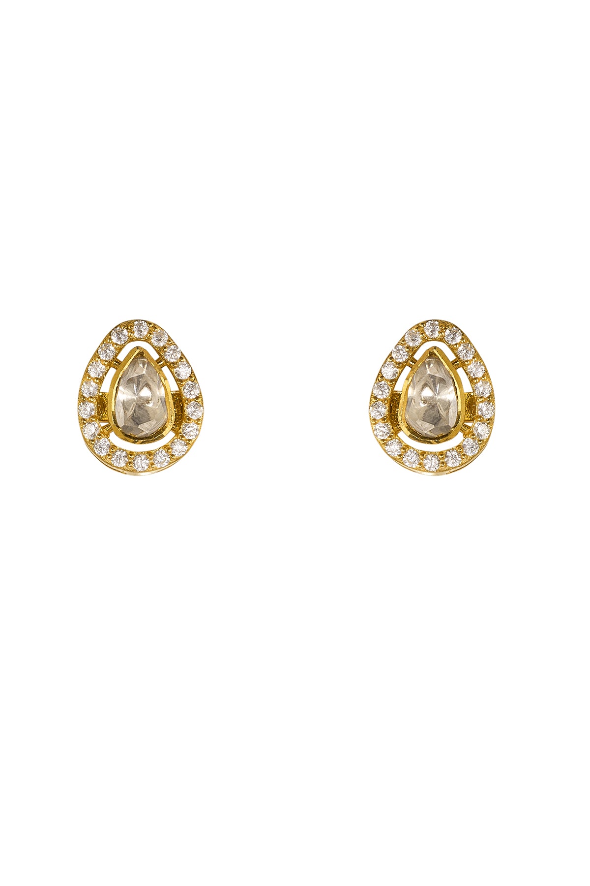 Yellow 925 silver drop diamond studded earrings with moissanite polki and screw closure. The dimension is 0.51 x 0.39