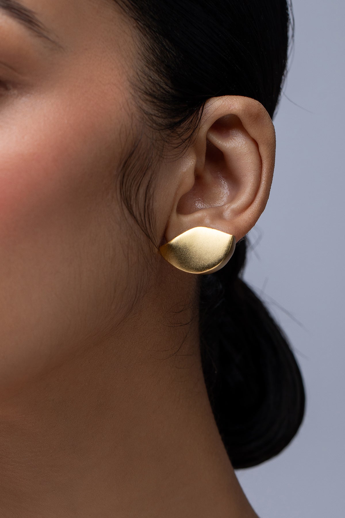 Golden brass earring with drip shape. The dimension is 1.5H, 2.5L, 0.1W