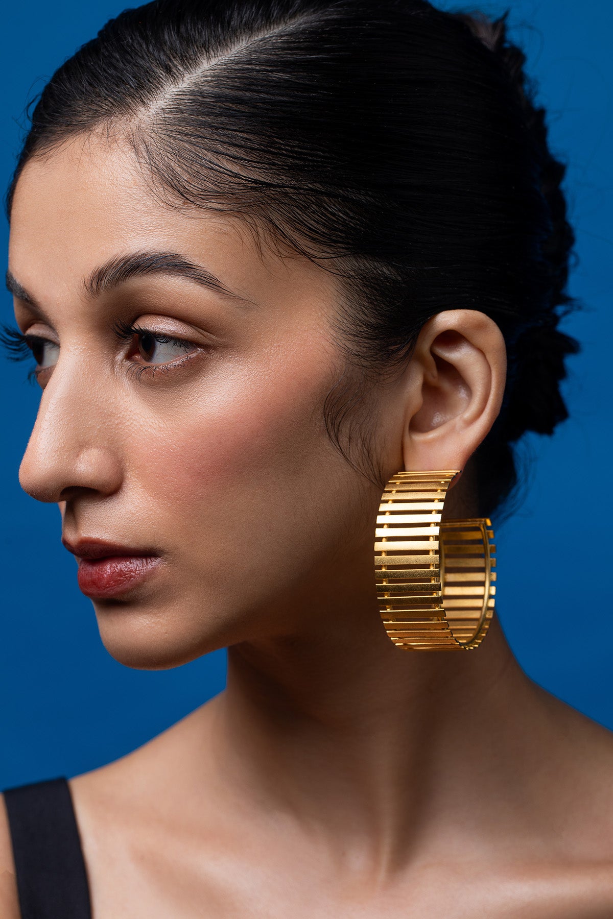 Buy Golden Strip Fence Hoop Earring for women by Ethnic Andaz online available at scrollnshops