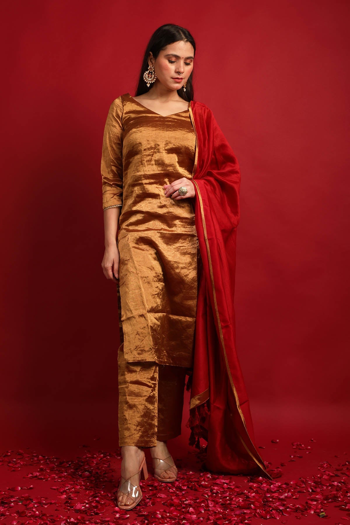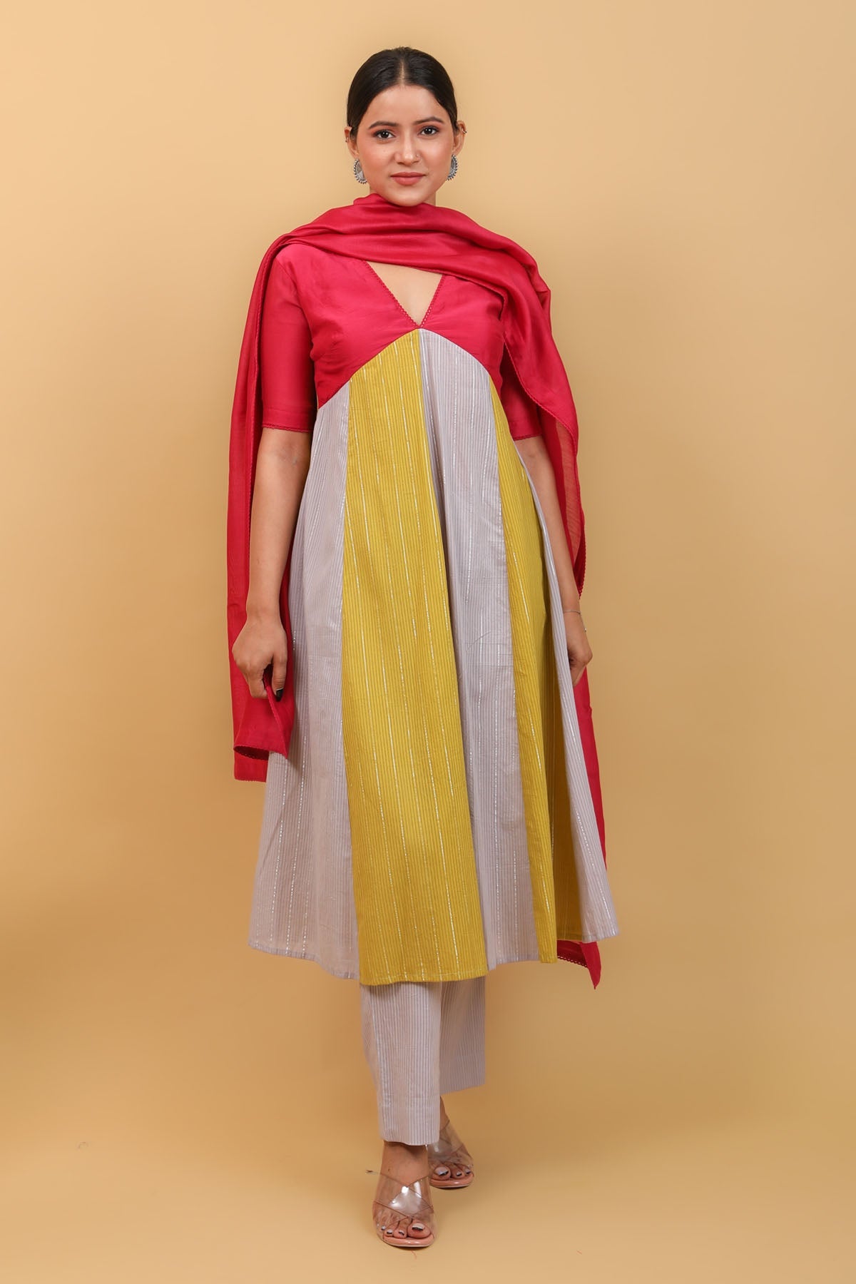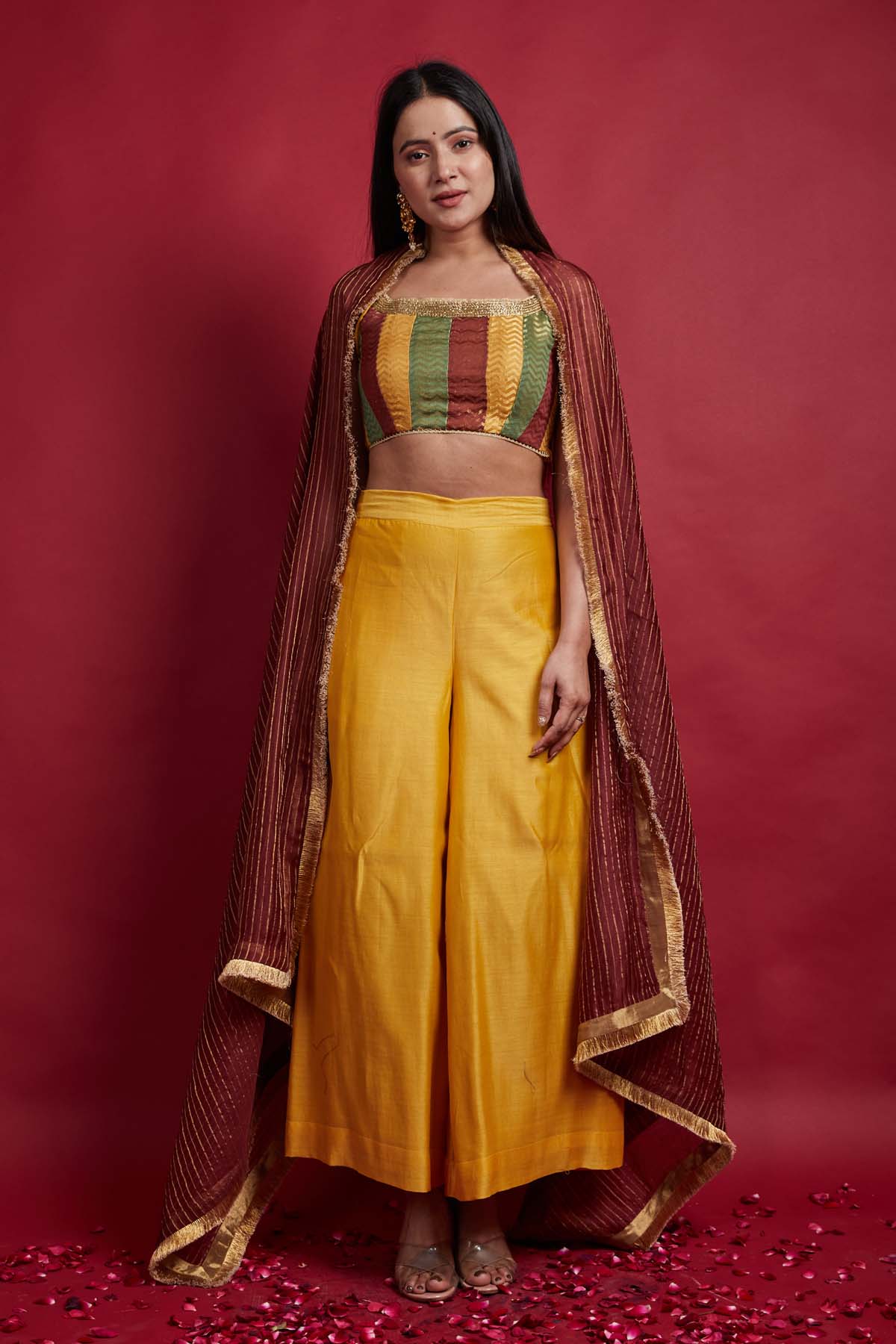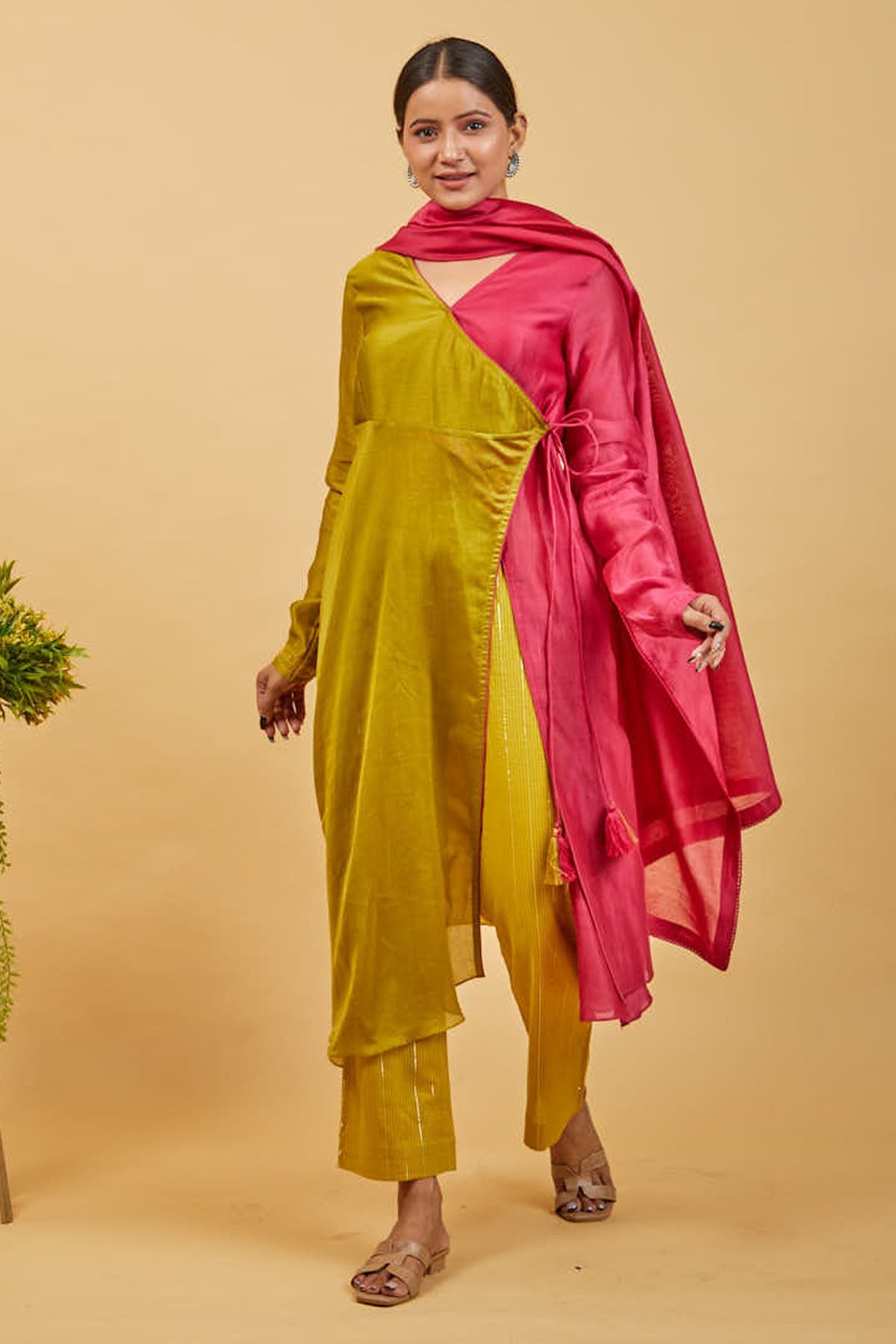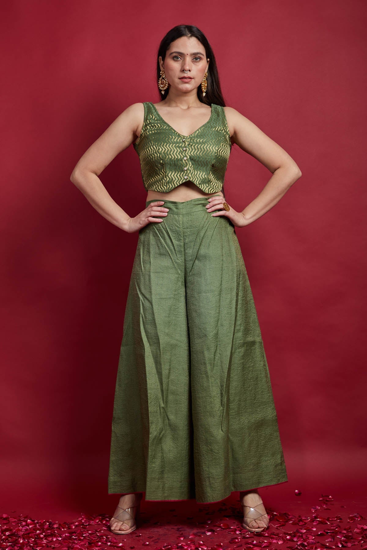 The adaptability of co-ord sets is one of its biggest benefits. There is a co-ord set to fit every situation, whether you're going to the office, having a night out, or attending coffee with buddies. For a more polished look, go for a fitted jacket and pair of pants, or embrace a crazier style with a crop top and skirt set. With so many different styles like 3 Piece Co-ord Set, Bralette & Printed Pants, Double Shade Co-ord Set, Tunic and Pants Co-ord Set, Shirt and Pant Set, and many more and fabrics like Chiffon, Linen, Silk, Cotton, Khadi, Satin, and etc. You may be stylish and unique at the same time. People call as Co-ords, Cords or Co-ord