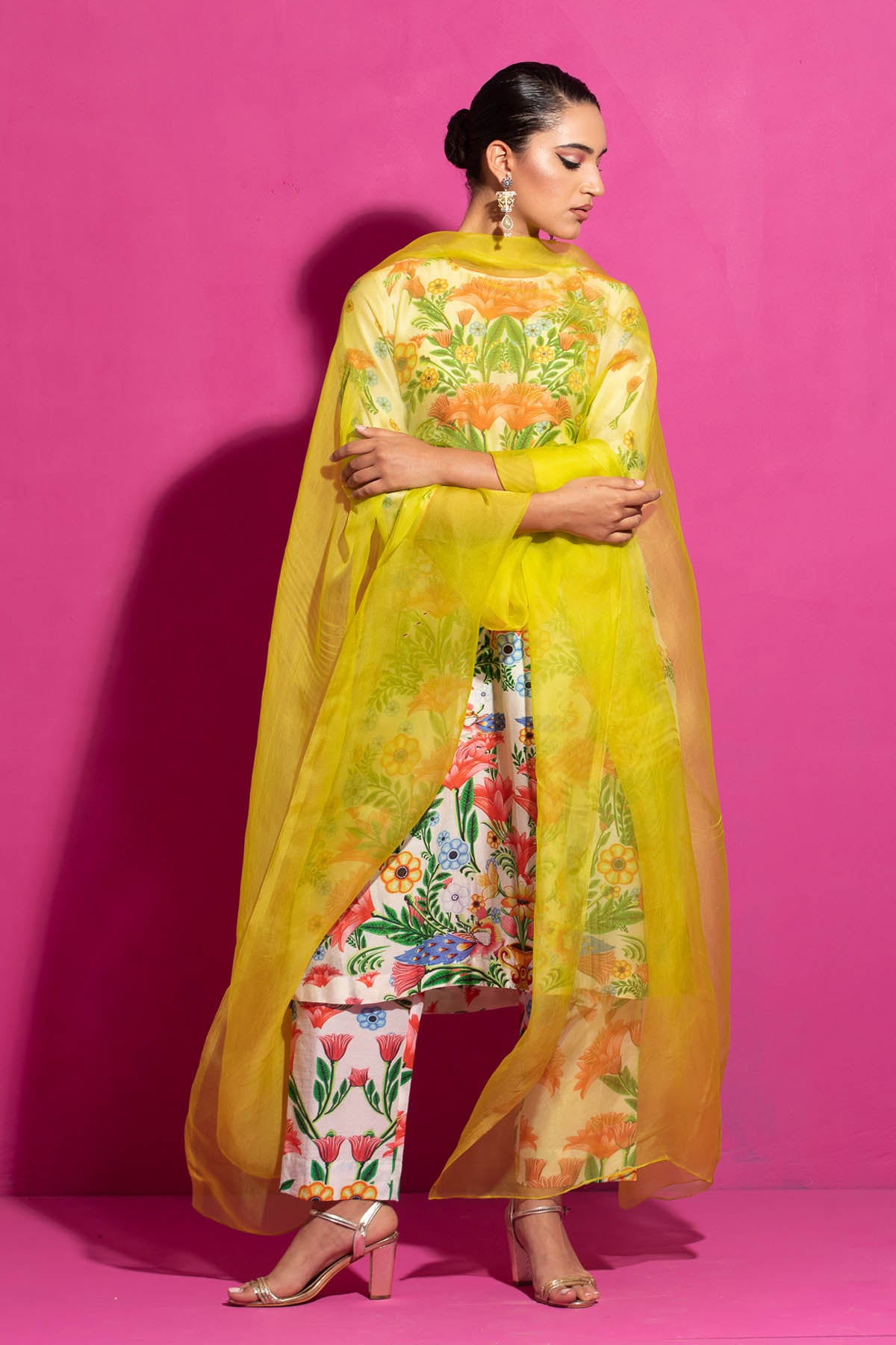 The adaptability of co-ord sets is one of its biggest benefits. There is a co-ord set to fit every situation, whether you're going to the office, having a night out, or attending coffee with buddies. For a more polished look, go for a fitted jacket and pair of pants, or embrace a crazier style with a crop top and skirt set. With so many different styles like 3 Piece Co-ord Set, Bralette & Printed Pants, Double Shade Co-ord Set, Tunic and Pants Co-ord Set, Shirt and Pant Set, and many more and fabrics like Chiffon, Linen, Silk, Cotton, Khadi, Satin, and etc. You may be stylish and unique at the same time. People call as Co-ords, Cords or Co-ord