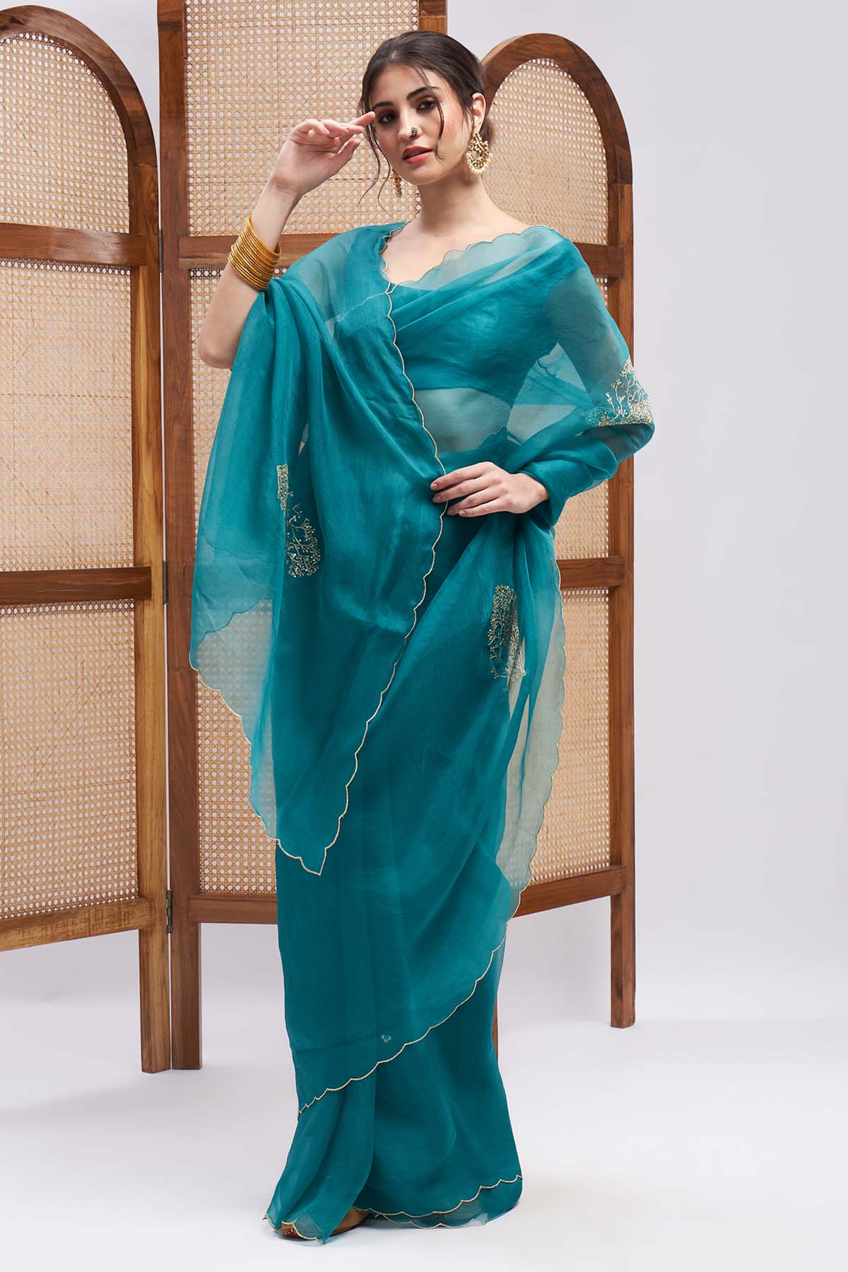 Buy Designer Teal Meenakari Zari Woven Saree Online