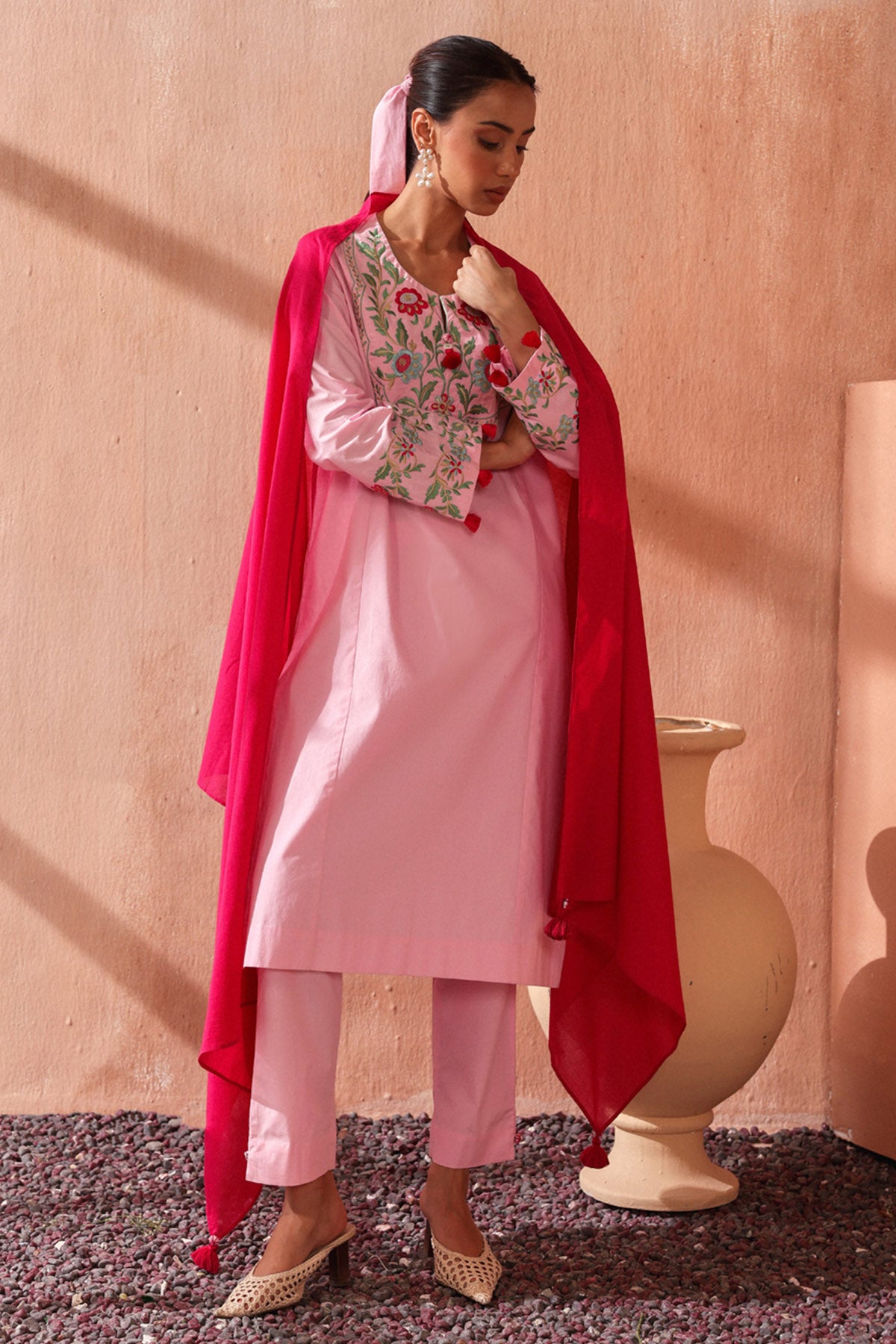 The adaptability of co-ord sets is one of its biggest benefits. There is a co-ord set to fit every situation, whether you're going to the office, having a night out, or attending coffee with buddies. For a more polished look, go for a fitted jacket and pair of pants, or embrace a crazier style with a crop top and skirt set. With so many different styles like 3 Piece Co-ord Set, Bralette & Printed Pants, Double Shade Co-ord Set, Tunic and Pants Co-ord Set, Shirt and Pant Set, and many more and fabrics like Chiffon, Linen, Silk, Cotton, Khadi, Satin, and etc. You may be stylish and unique at the same time. People call as Co-ords, Cords or Co-ord