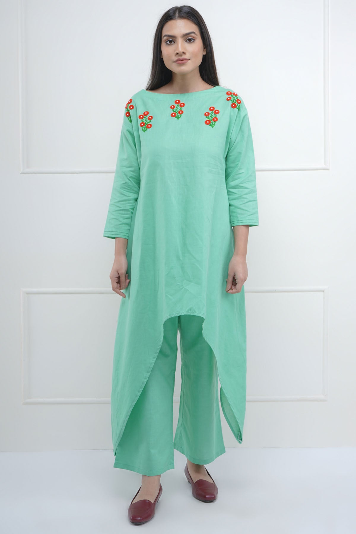 The adaptability of co-ord sets is one of its biggest benefits. There is a co-ord set to fit every situation, whether you're going to the office, having a night out, or attending coffee with buddies. For a more polished look, go for a fitted jacket and pair of pants, or embrace a crazier style with a crop top and skirt set. With so many different styles like 3 Piece Co-ord Set, Bralette & Printed Pants, Double Shade Co-ord Set, Tunic and Pants Co-ord Set, Shirt and Pant Set, and many more and fabrics like Chiffon, Linen, Silk, Cotton, Khadi, Satin, and etc. You may be stylish and unique at the same time. People call as Co-ords, Cords or Co-ord