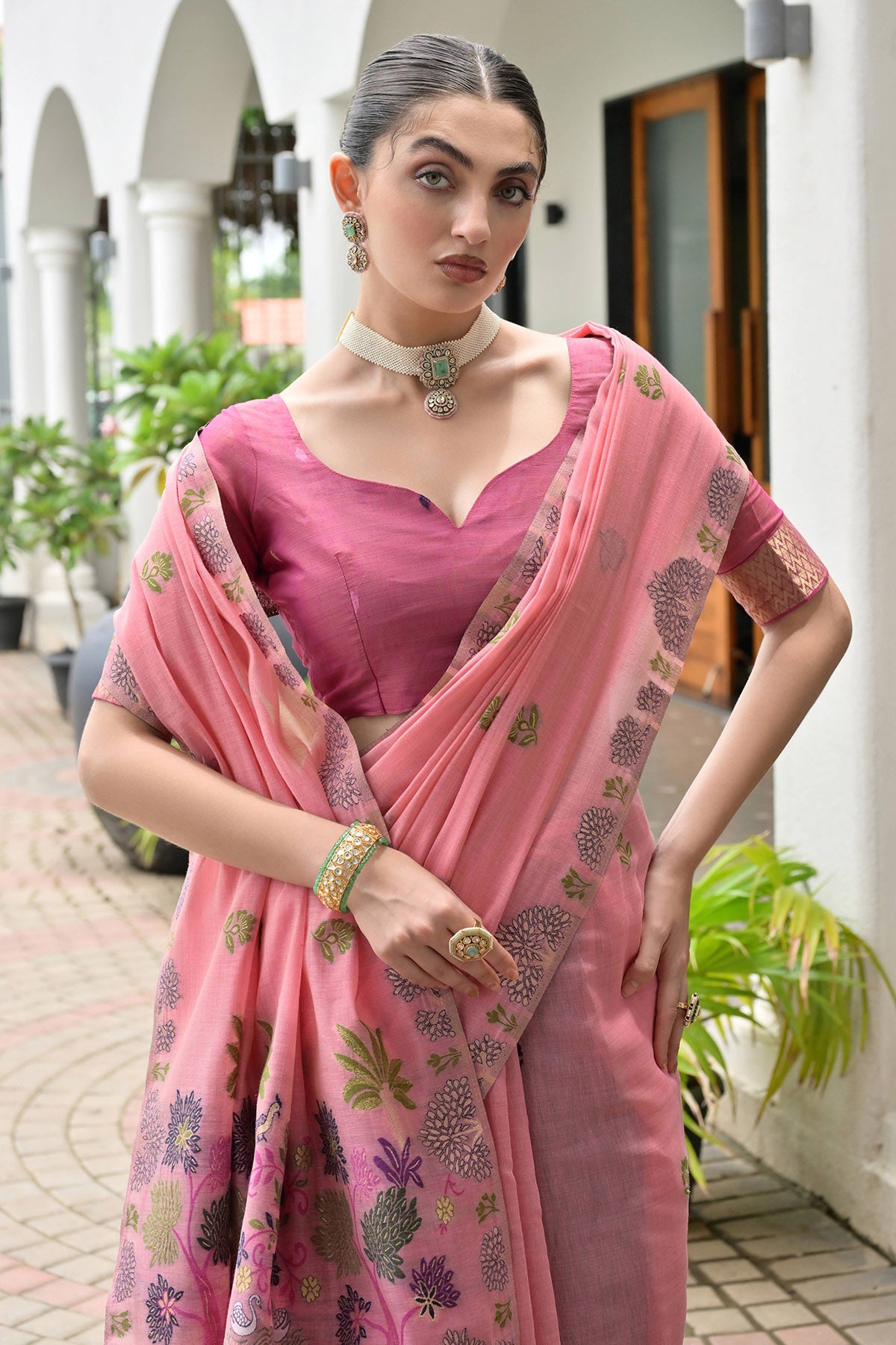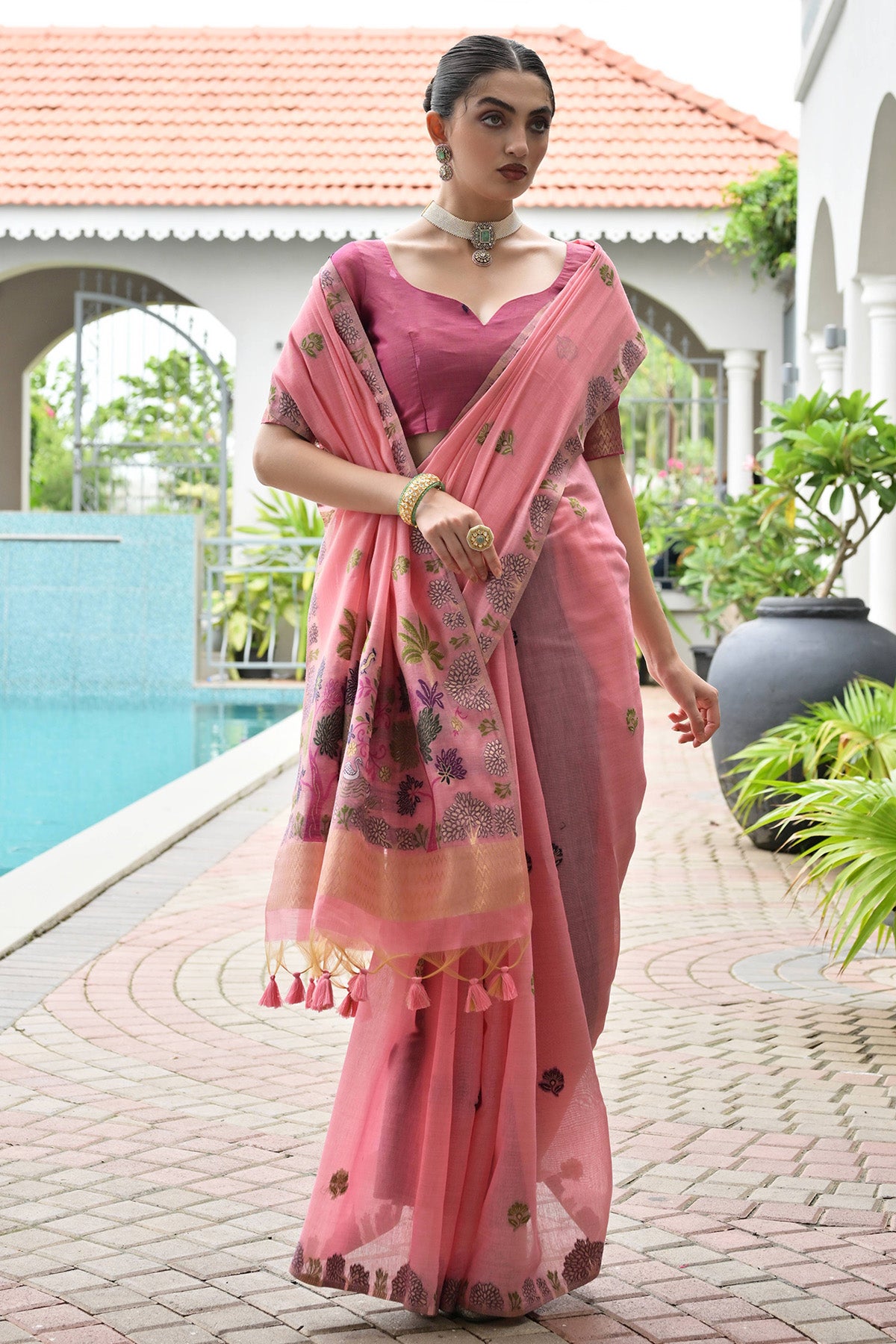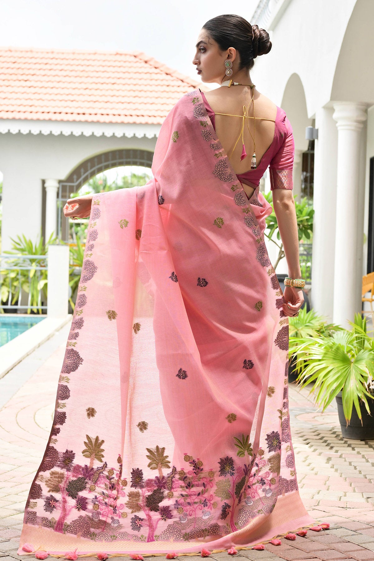 Buy Pink Cotton Thread Woven Saree for women by Lili Lala Designer online available at scrollnshops