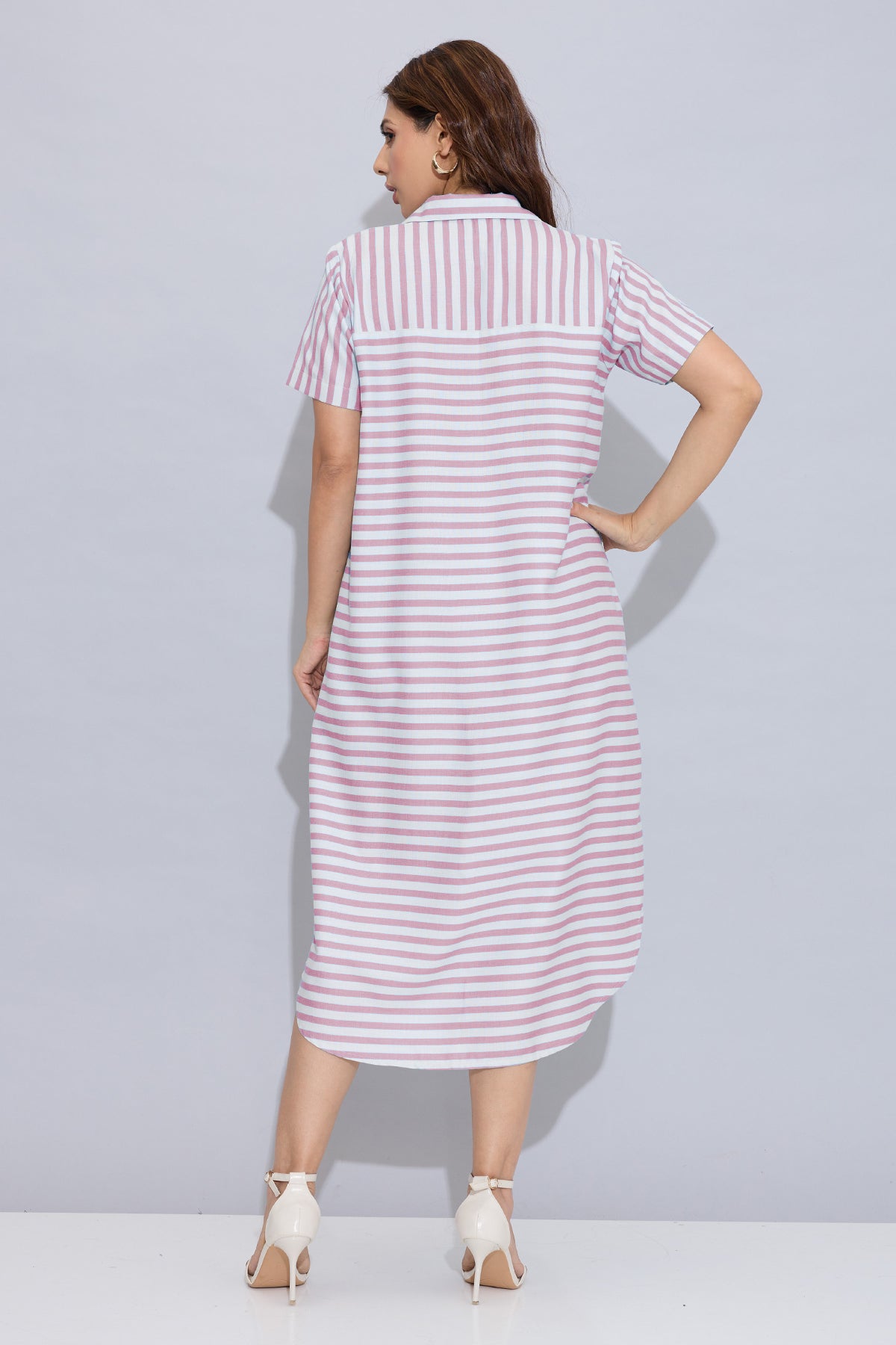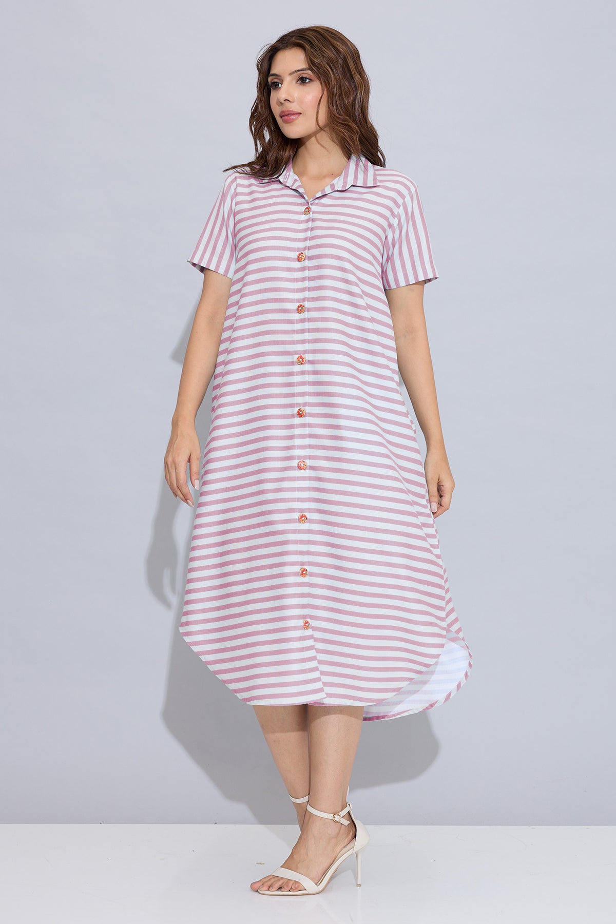 Buy Pink Stripe Cotton Shirt Dress for Women by SNEHA B Designer online available at scrollnshops