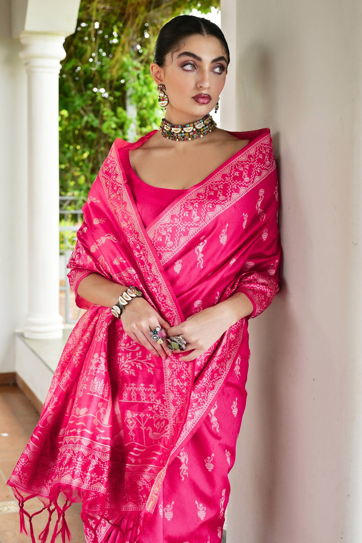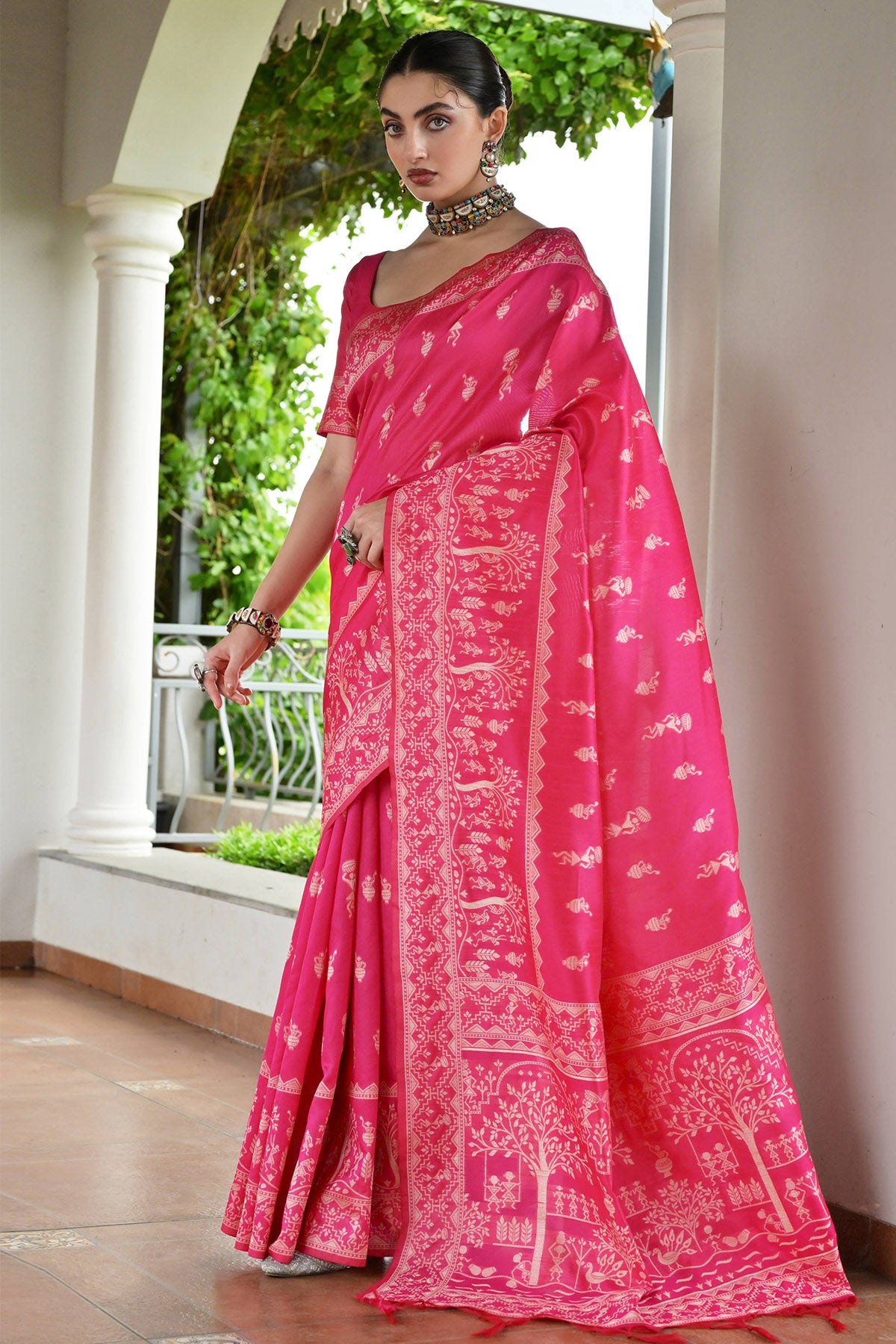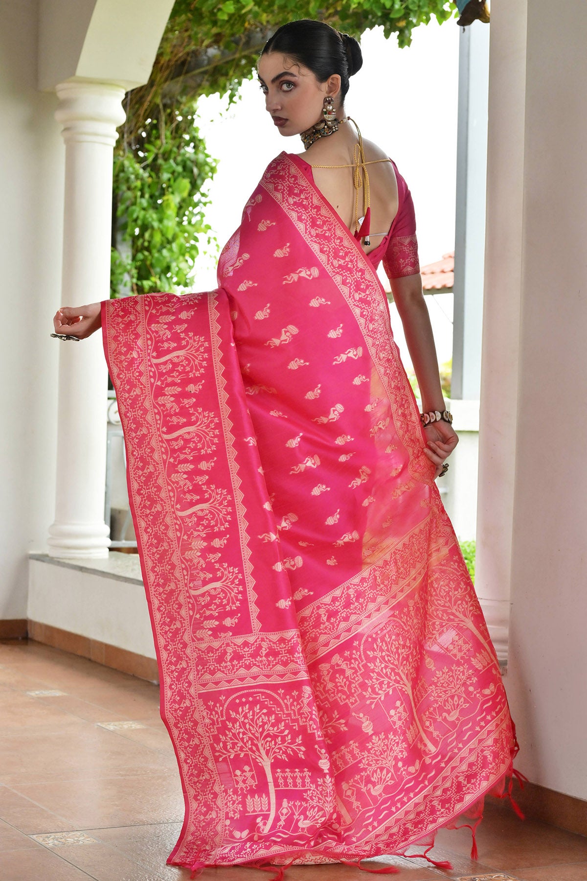 Buy Rani Handloom Raw Silk Saree for women by Lili Lala Designer online available at scrollnshops
