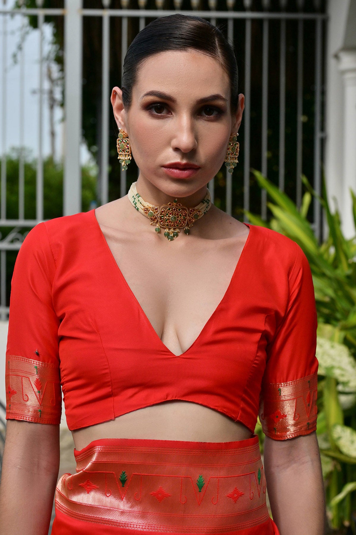 Buy Red Paithani Silk Woven Saree for women by Lili Lala Designer online available at scrollnshops