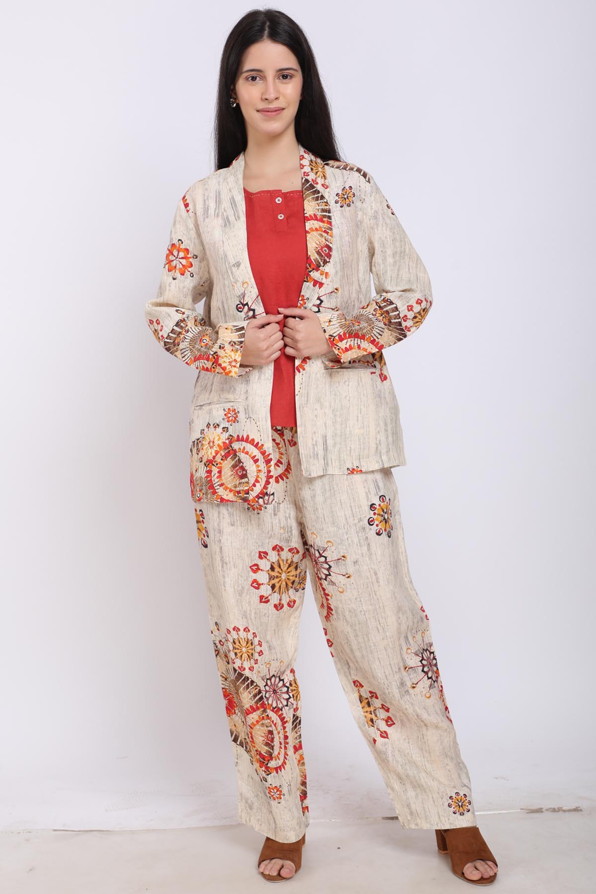 The adaptability of co-ord sets is one of its biggest benefits. There is a co-ord set to fit every situation, whether you're going to the office, having a night out, or attending coffee with buddies. For a more polished look, go for a fitted jacket and pair of pants, or embrace a crazier style with a crop top and skirt set. With so many different styles like 3 Piece Co-ord Set, Bralette & Printed Pants, Double Shade Co-ord Set, Tunic and Pants Co-ord Set, Shirt and Pant Set, and many more and fabrics like Chiffon, Linen, Silk, Cotton, Khadi, Satin, and etc. You may be stylish and unique at the same time. People call as Co-ords, Cords or Co-ord