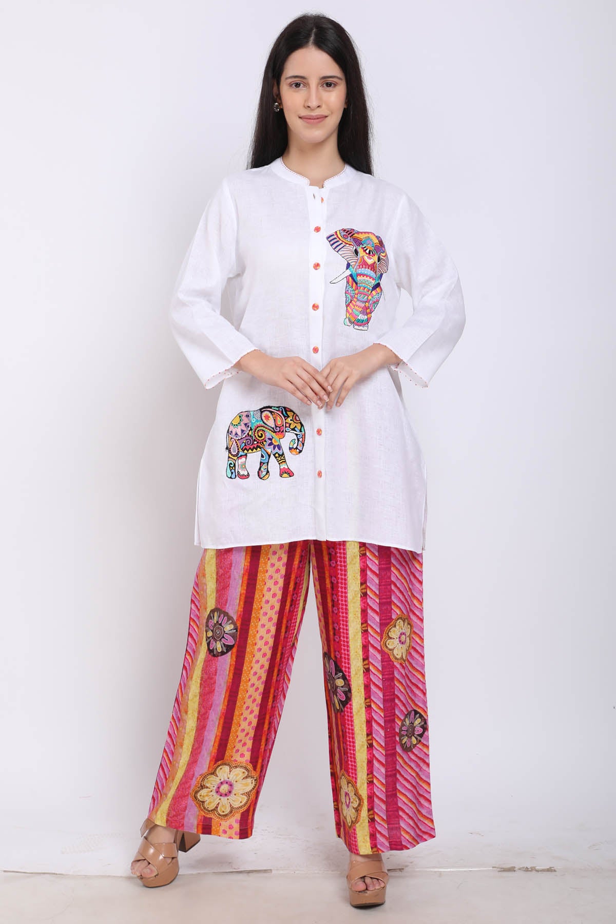 The adaptability of co-ord sets is one of its biggest benefits. There is a co-ord set to fit every situation, whether you're going to the office, having a night out, or attending coffee with buddies. For a more polished look, go for a fitted jacket and pair of pants, or embrace a crazier style with a crop top and skirt set. With so many different styles like 3 Piece Co-ord Set, Bralette & Printed Pants, Double Shade Co-ord Set, Tunic and Pants Co-ord Set, Shirt and Pant Set, and many more and fabrics like Chiffon, Linen, Silk, Cotton, Khadi, Satin, and etc. You may be stylish and unique at the same time. People call as Co-ords, Cords or Co-ord