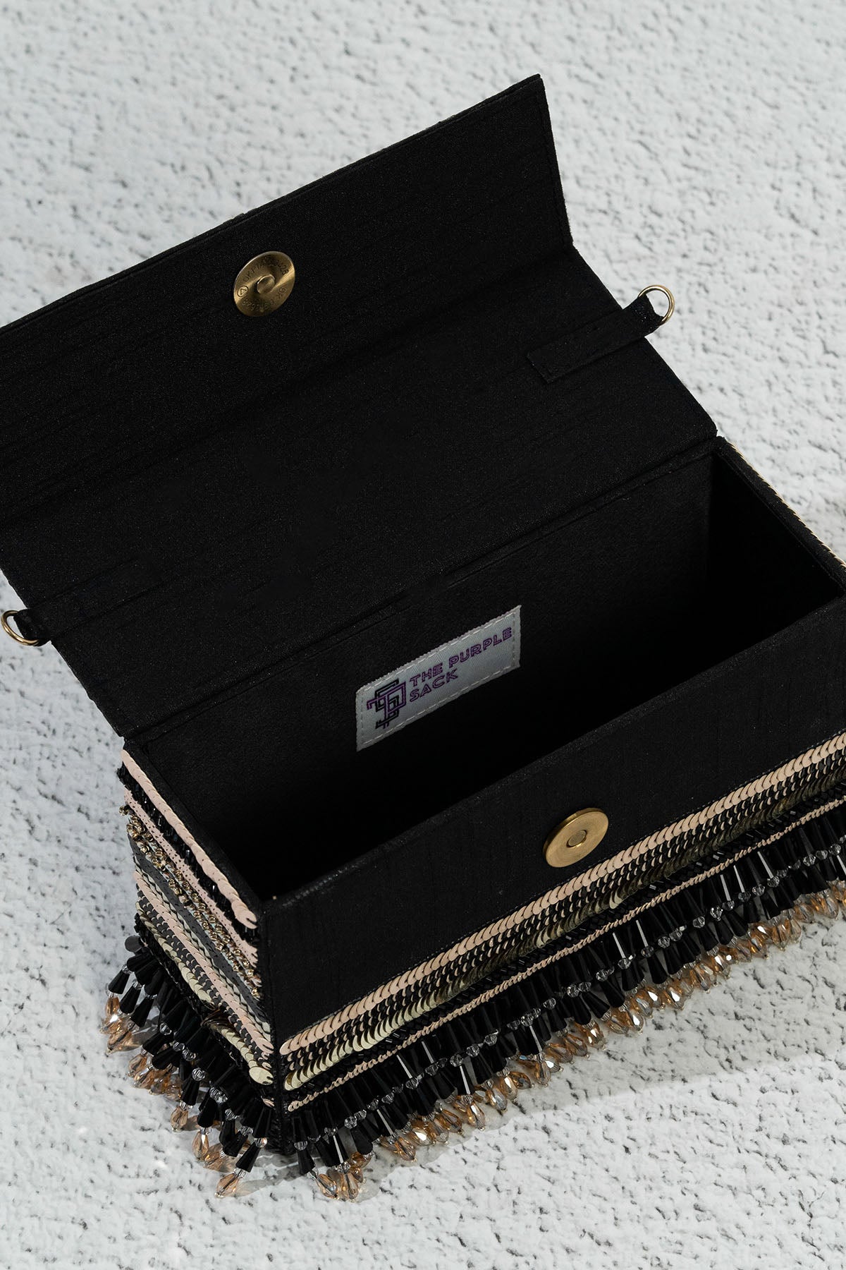 Buy Black Raw Silk Sequins Clutch for women by the Purple sack online available at scrollnshops