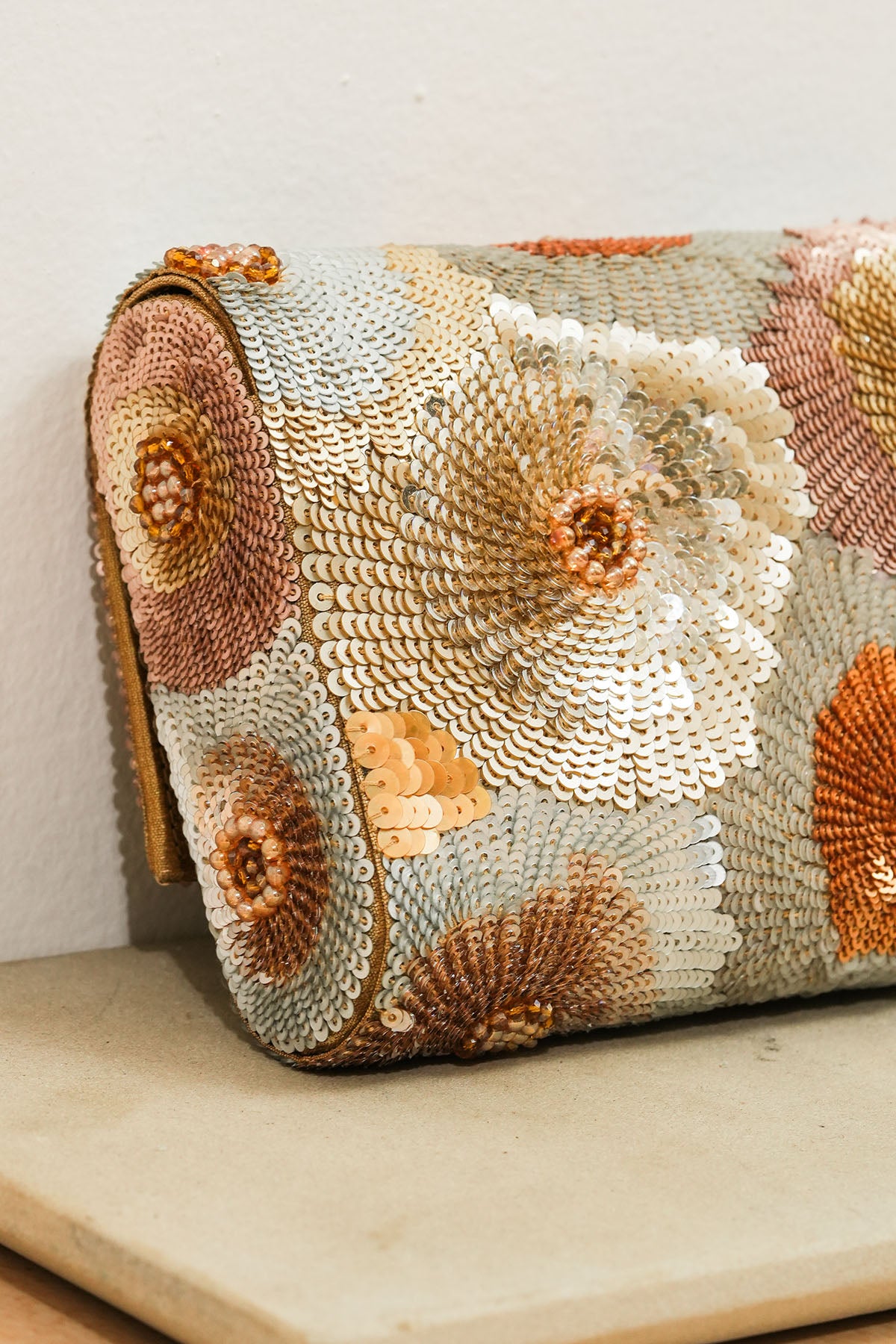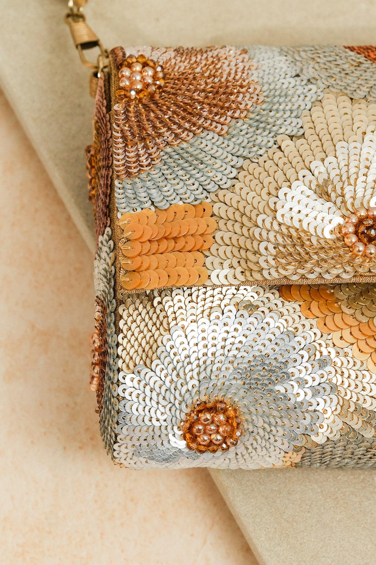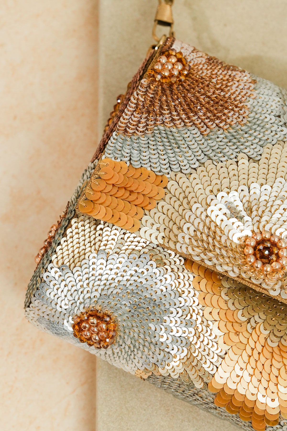 Buy Golden Flower Sequins Clutch for women by the Purple sack online available at scrollnshops