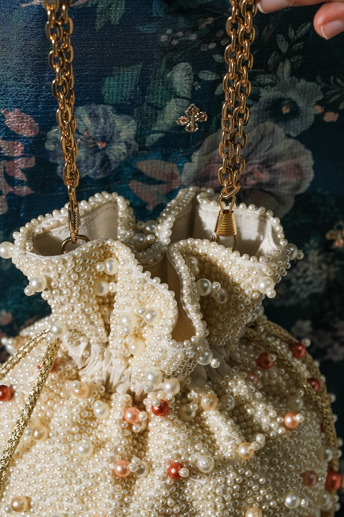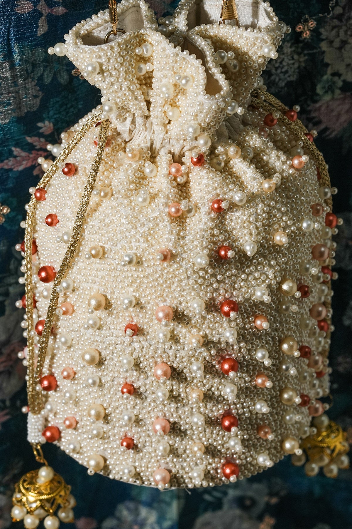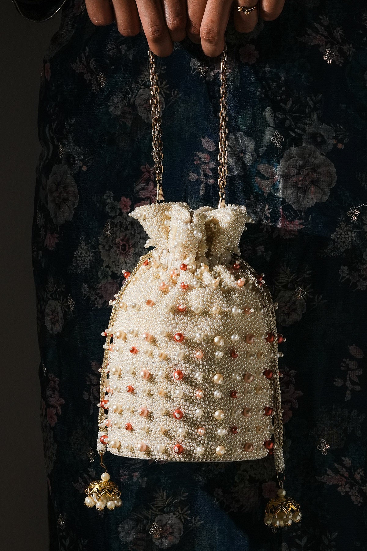 Buy White Hand Crafted Pearl Potli for women by the Purple sack online available at scrollnshops