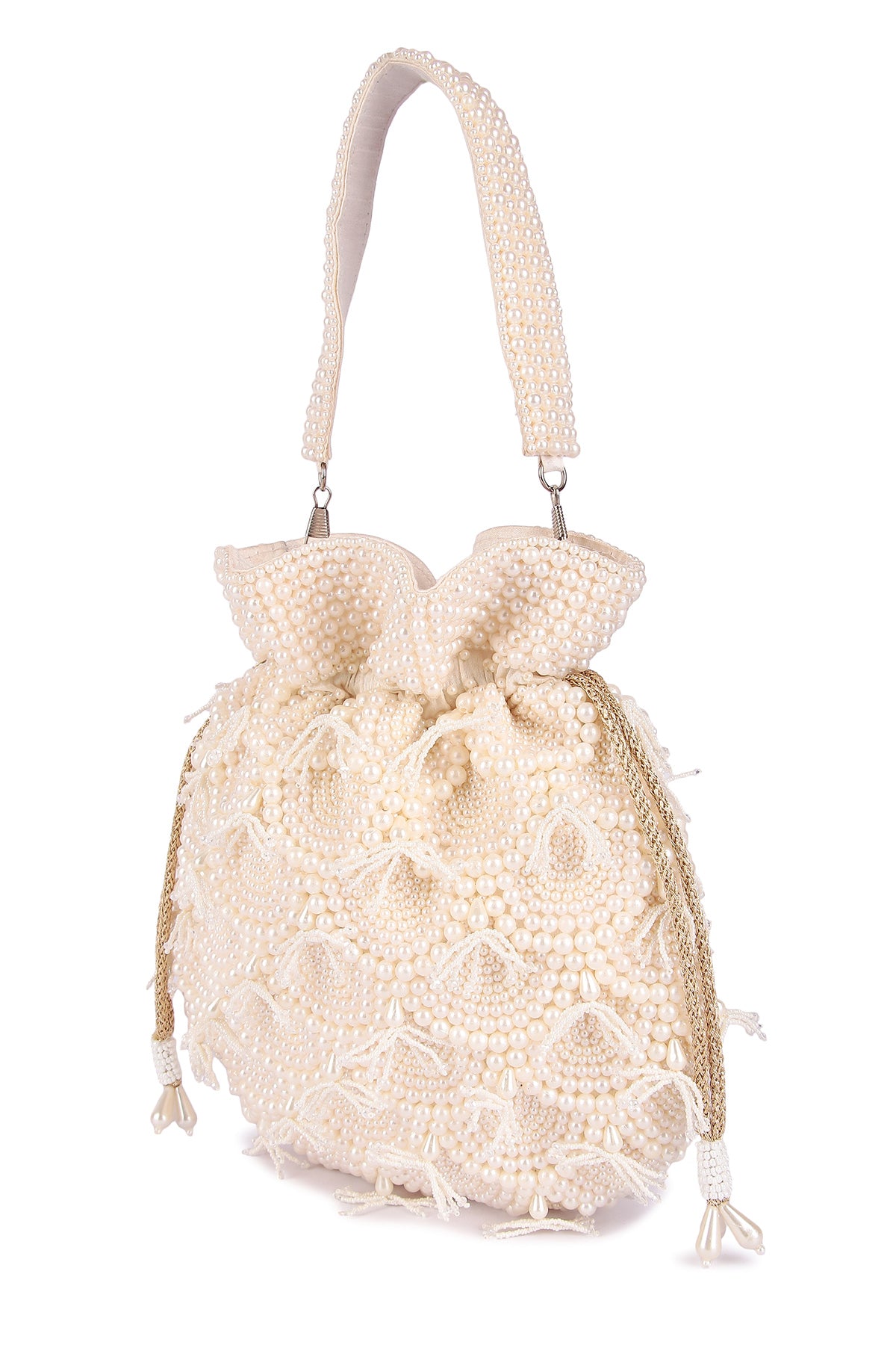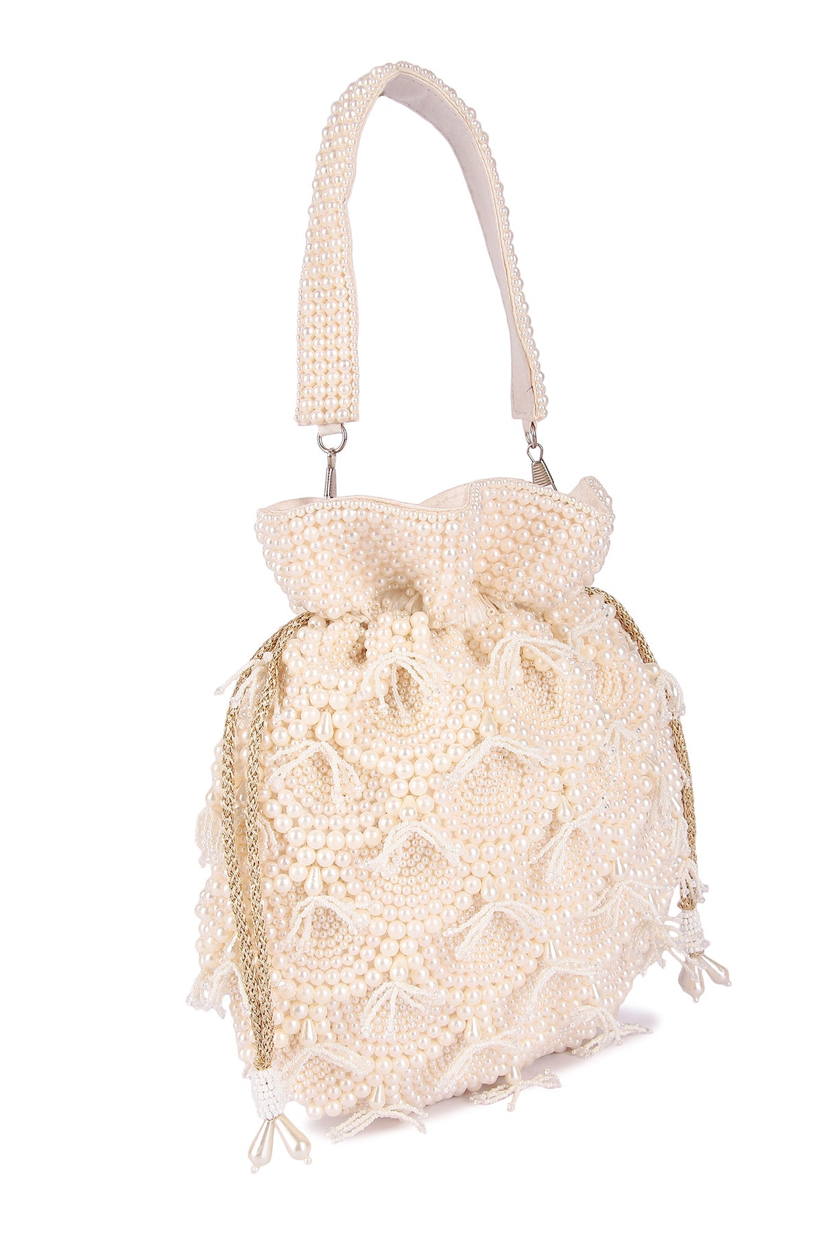 Buy White Raw Silk Pearl Work Potli  for women by the Purple sack online available at scrollnshops