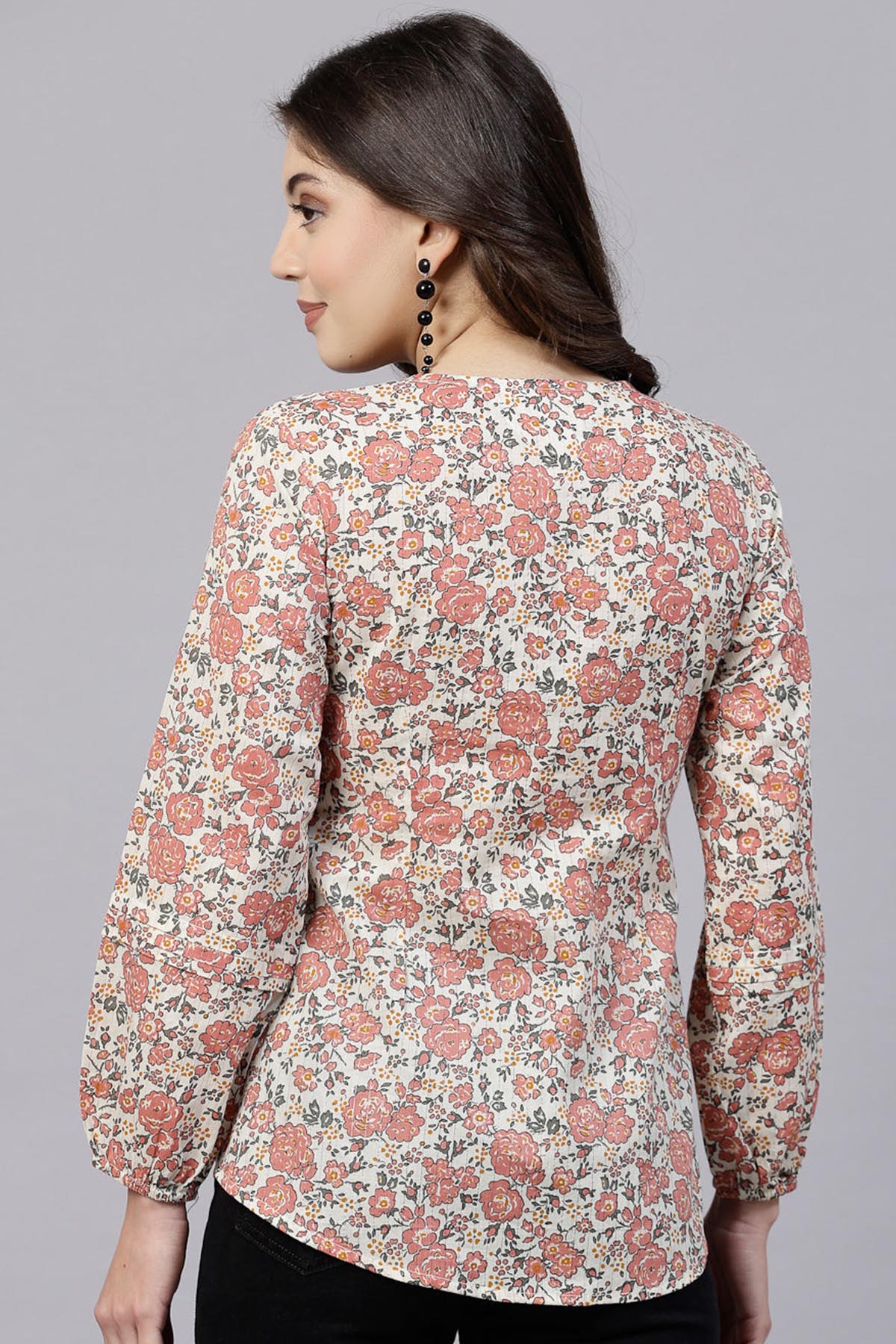 Buy Peach Ditsy Printed Pintuck Top for Women by Qomn Designer online available at scrollnshops