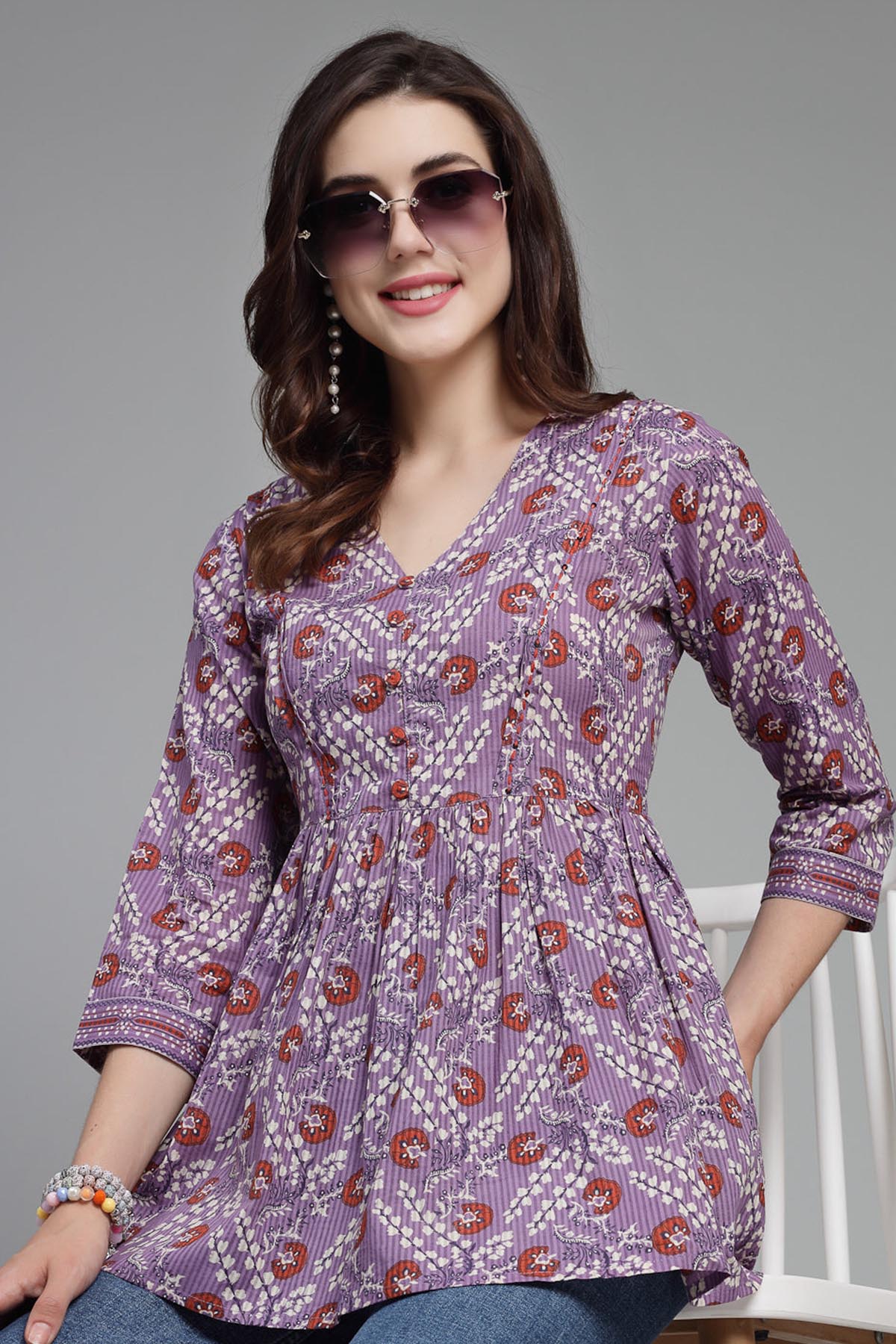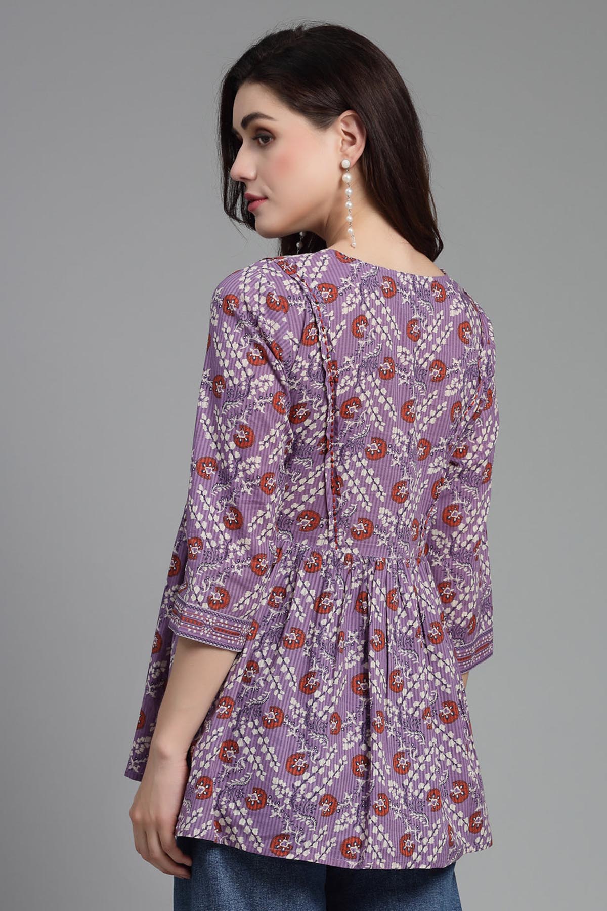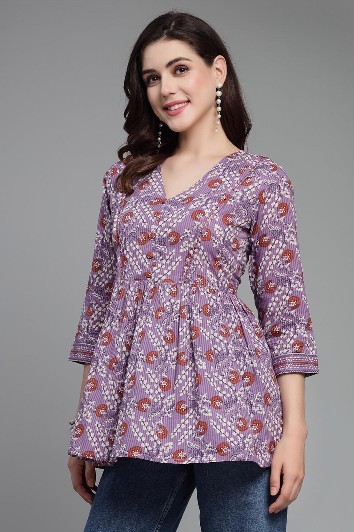 Buy Purple Pure Cotton Floral Top for Women by Qomn Designer online available at scrollnshops