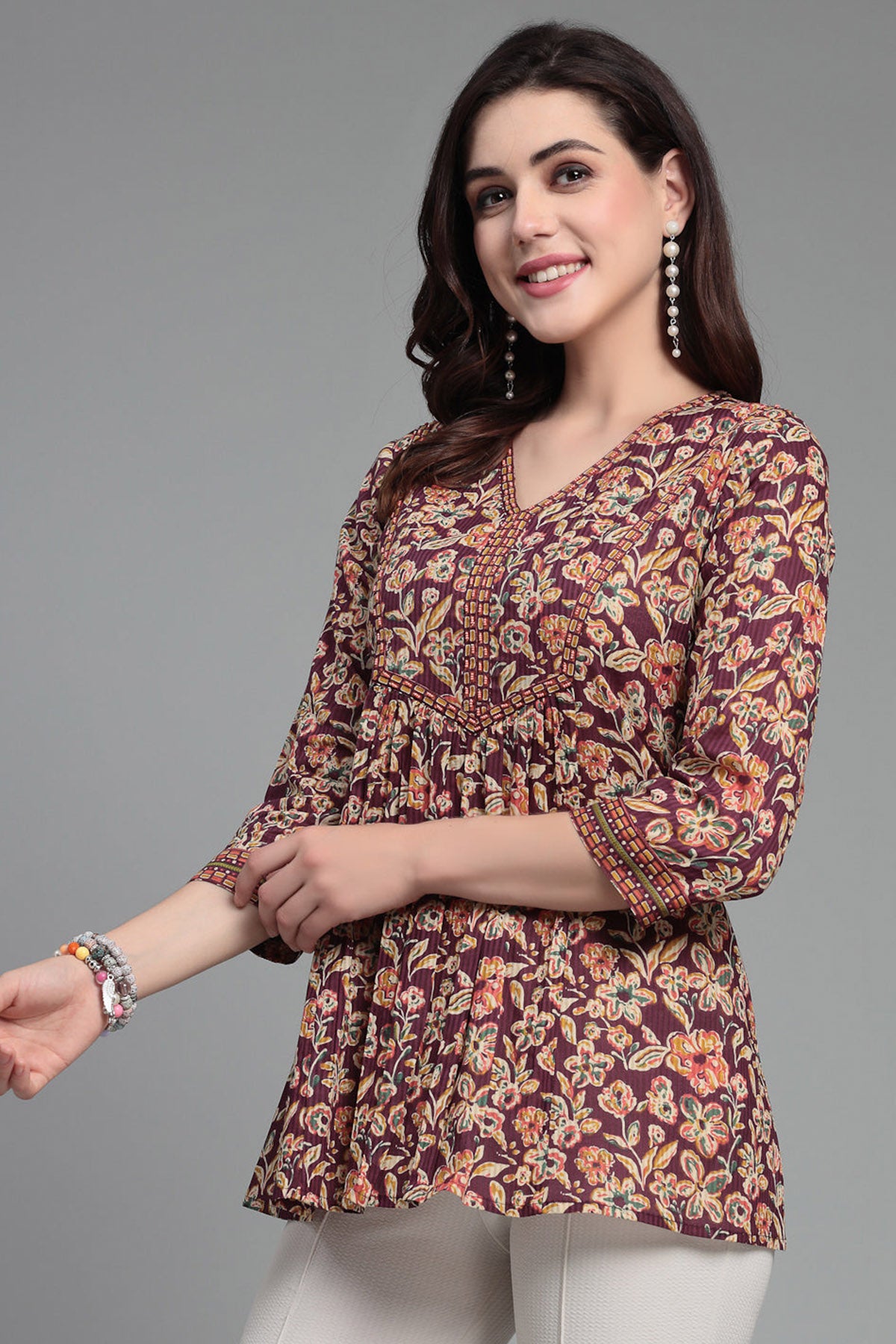 Buy Wine Printed Adda Detailed Top for Women by Qomn Designer online available at scrollnshops