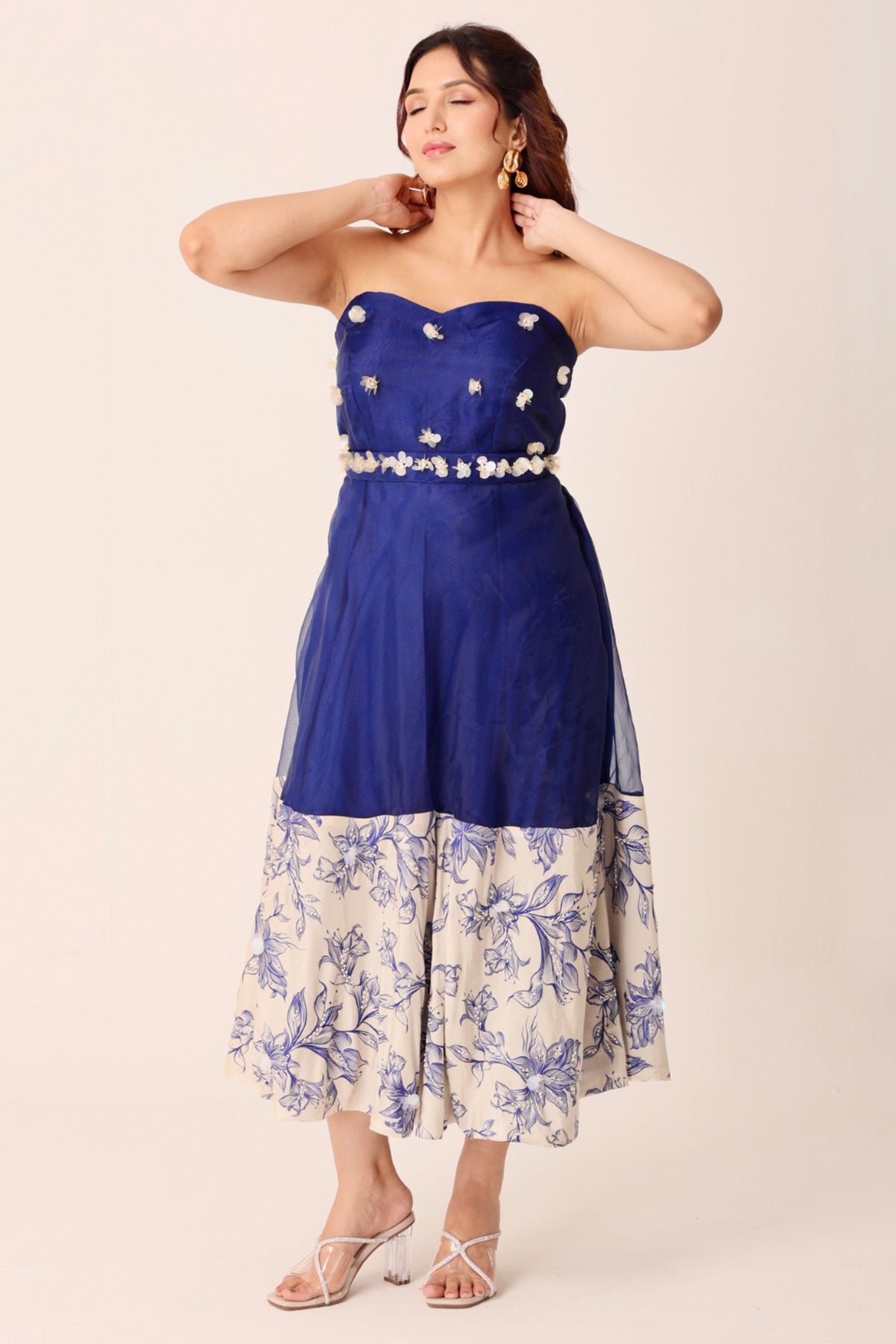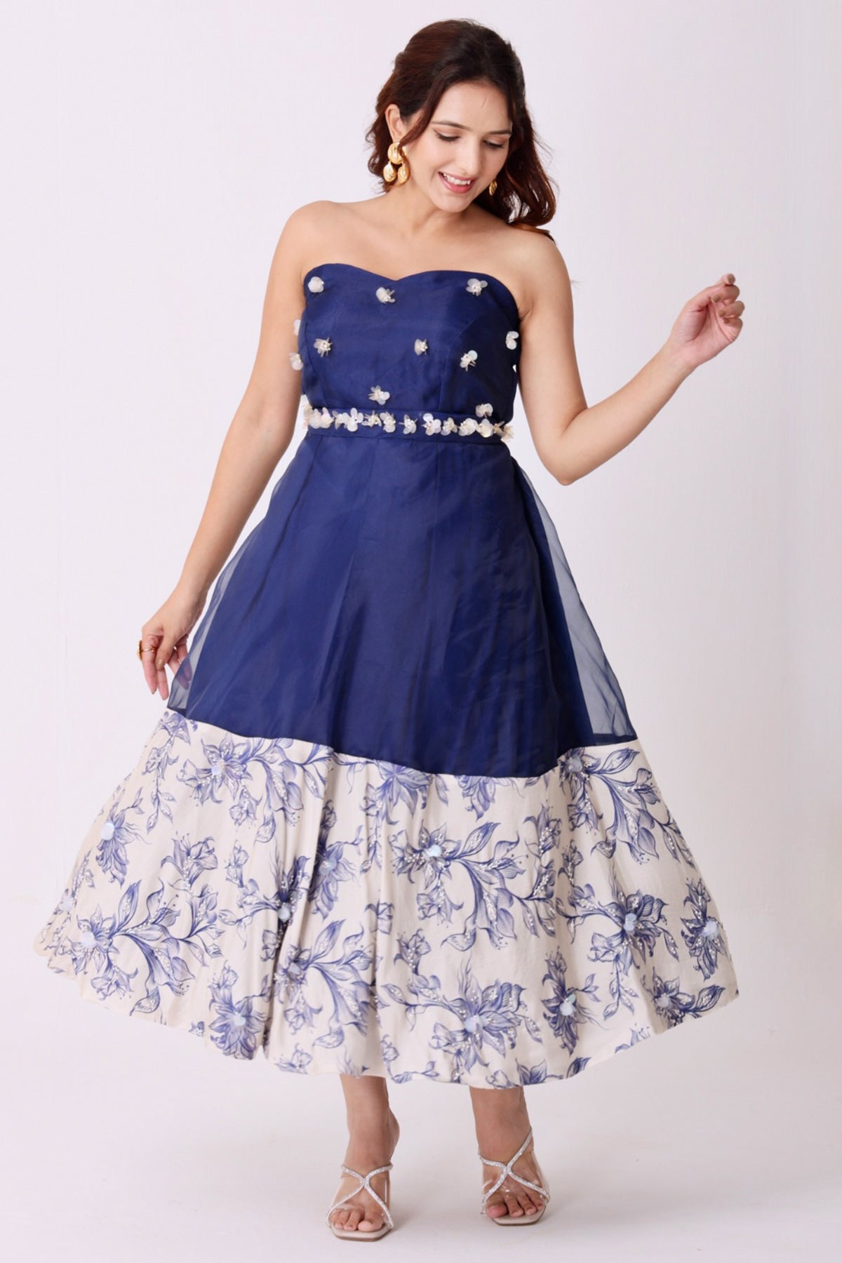 Buy Ivory & Navy Embroidered Dress for women by Namita Sharma Designer online available at scrollnshops