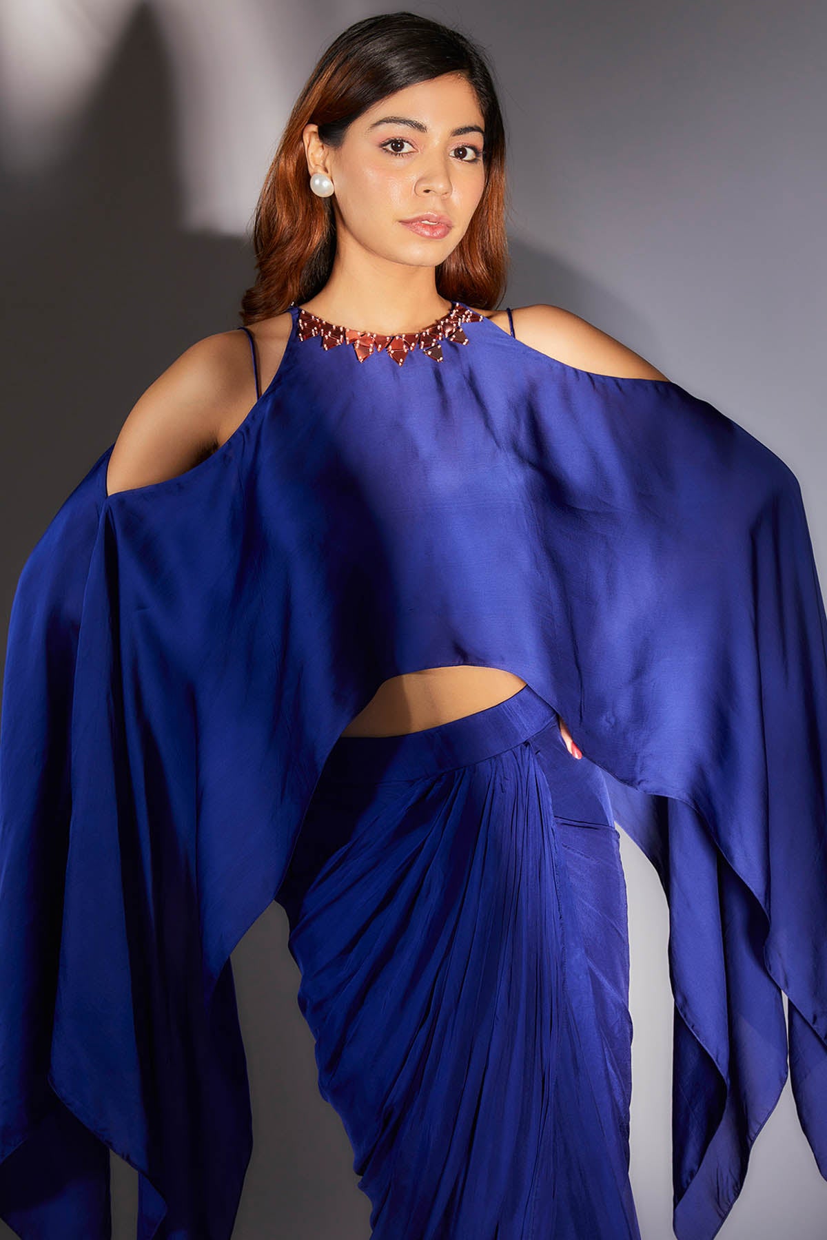 Masumi Mewawalla Royal Blue Drape Shirt & Skirt