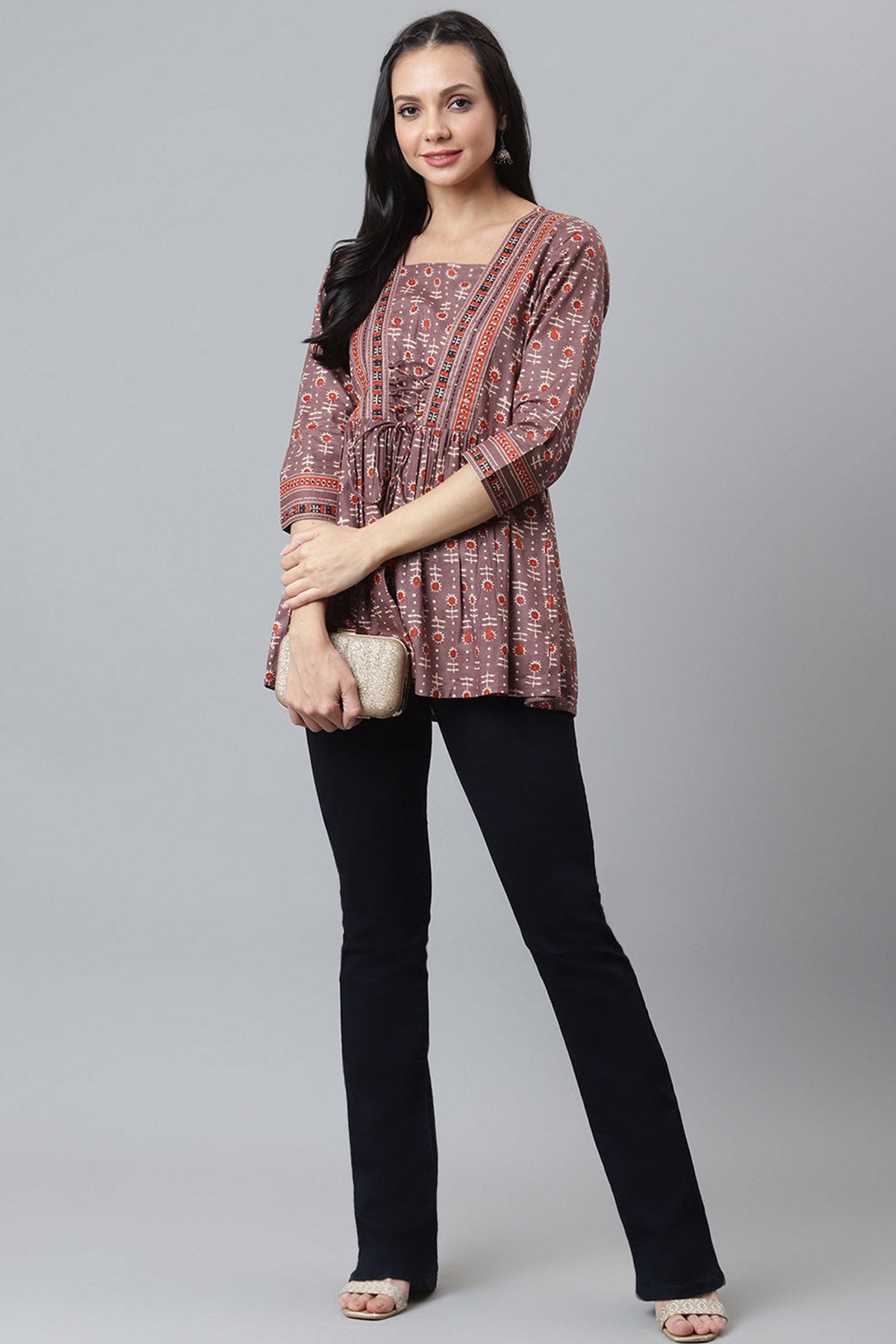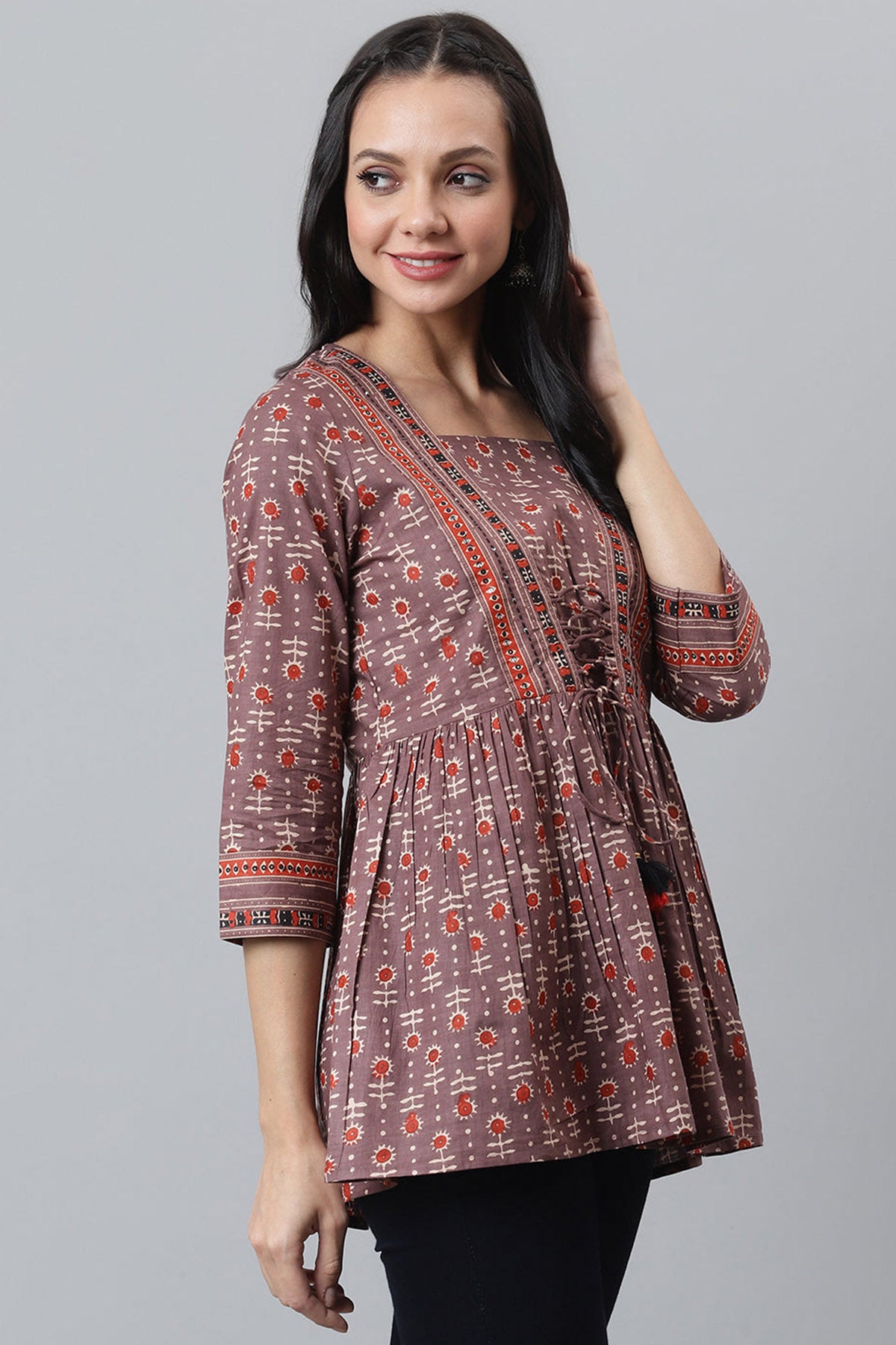 Buy Rust Printed Tie Up Tassels Top for Women by Qomn Designer online available at scrollnshops