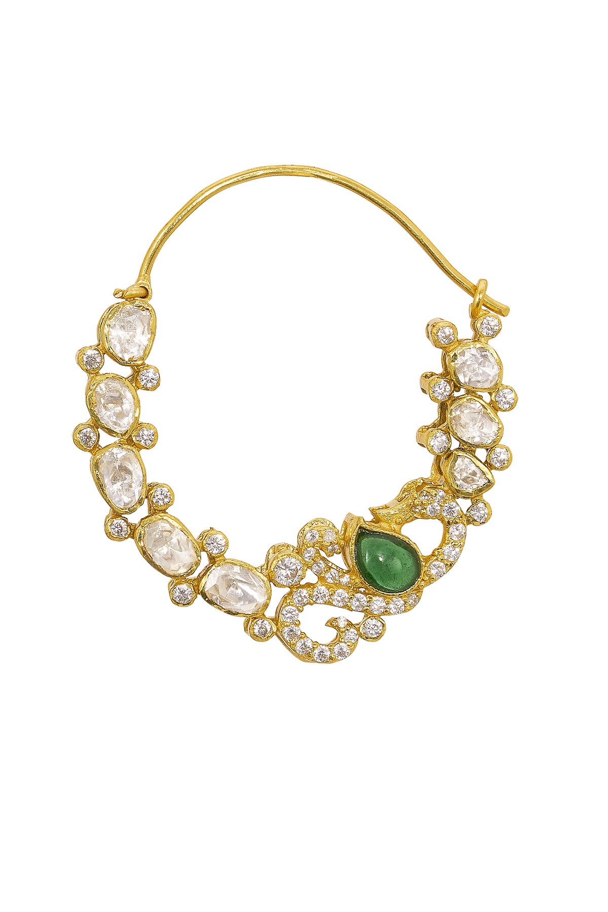Yellow 925 silver diamond nose ring with moissanite polki, gold plating and slip on closure. The dimension is 1.54 x 1.61