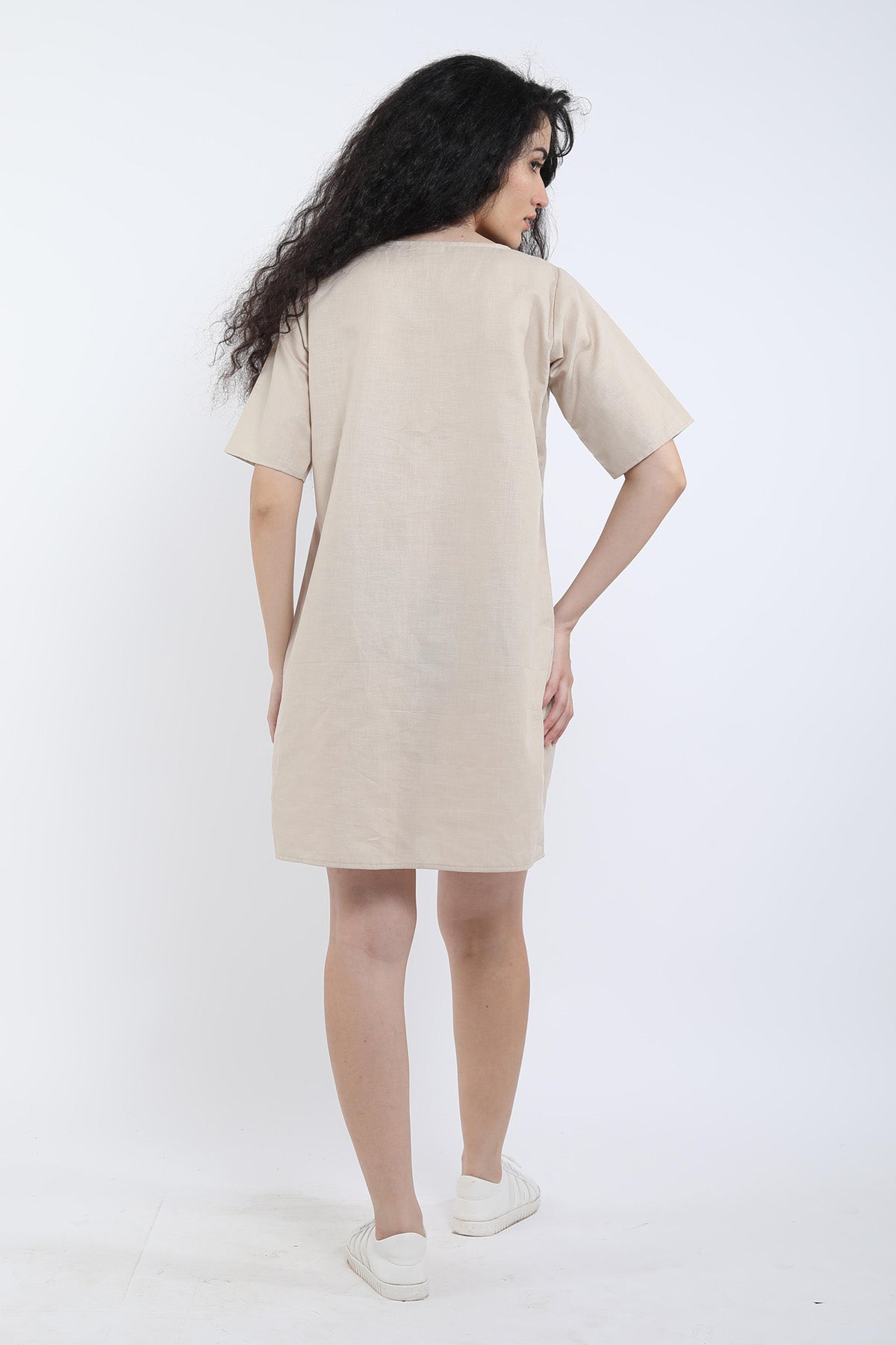 Buy Beige Cotton Linen Loose Dress for Women by SNEHA B Designer online available at scrollnshops