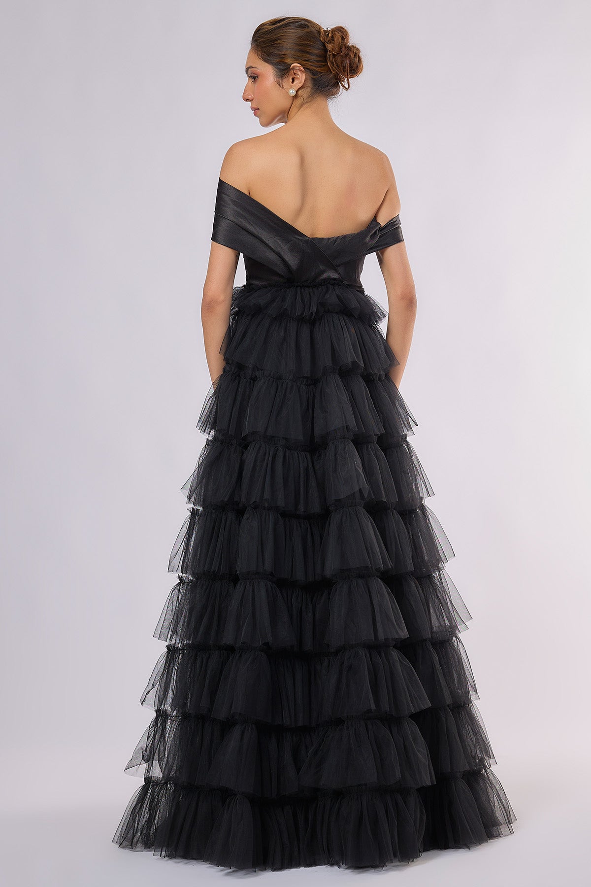 Buy Black Tulle and Mashroo Gown for women by Emblaze online available at scrollnshops