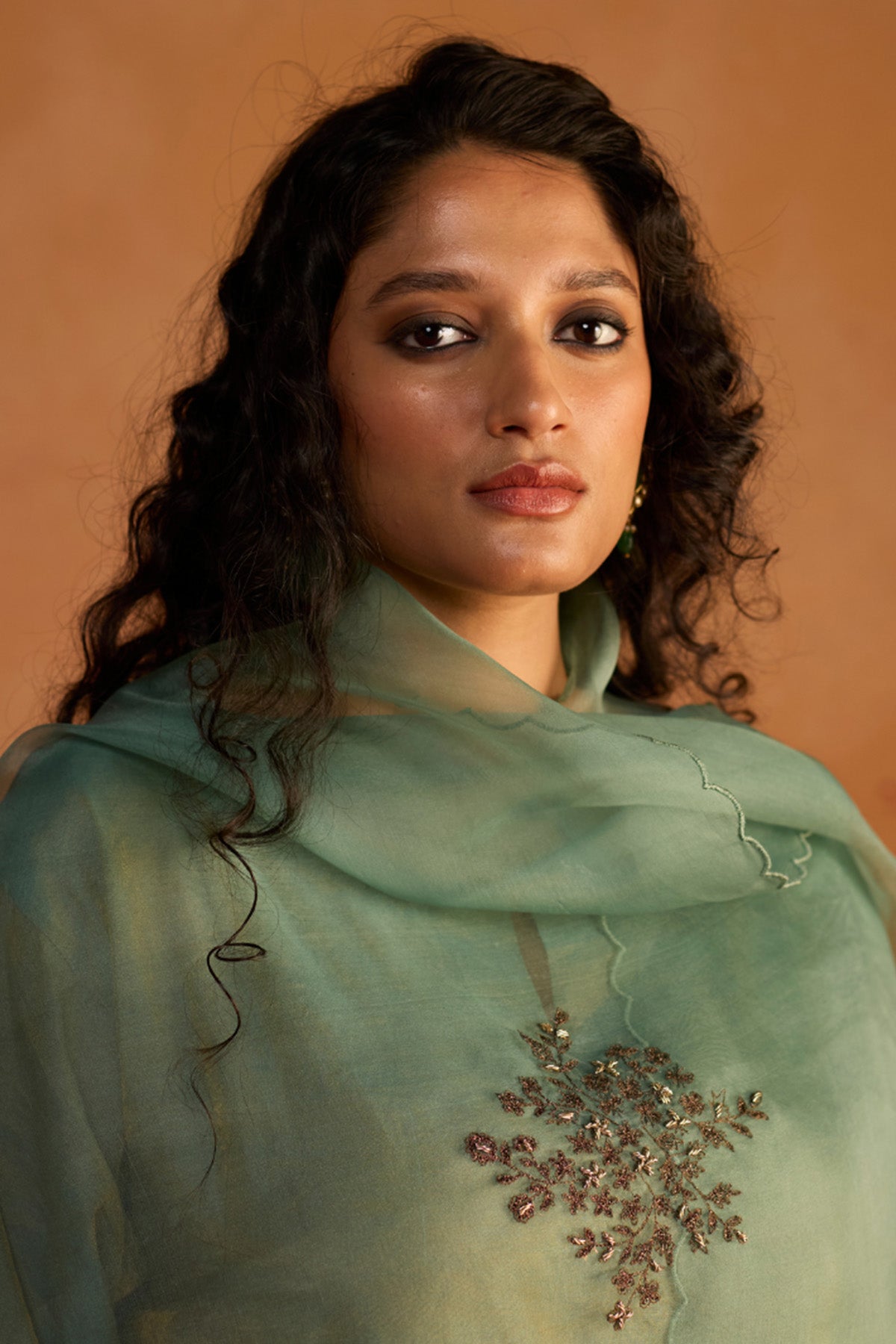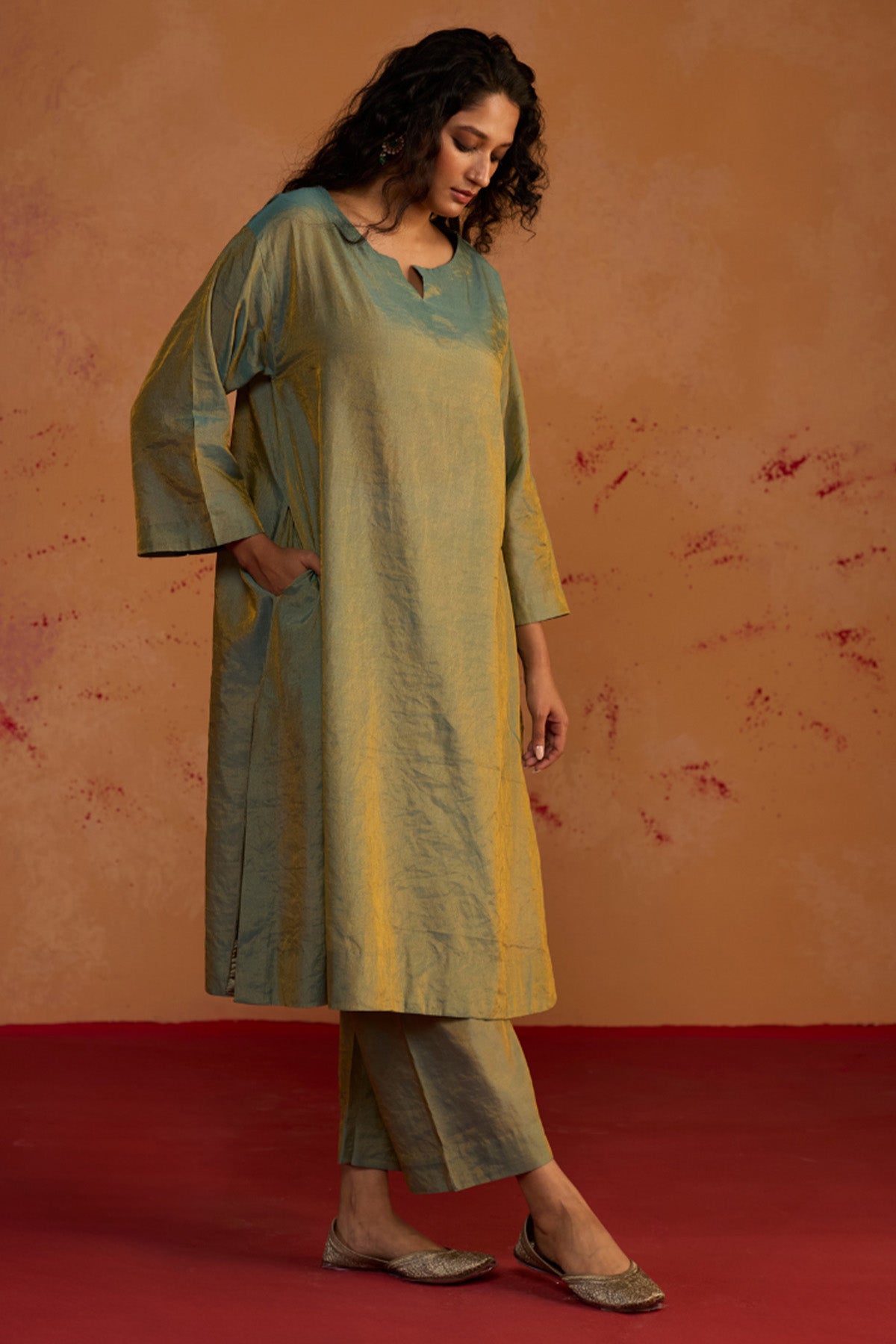 Buy Blue & Green Banarasi Kurta Set for women by Rhua online available at scrollnshops